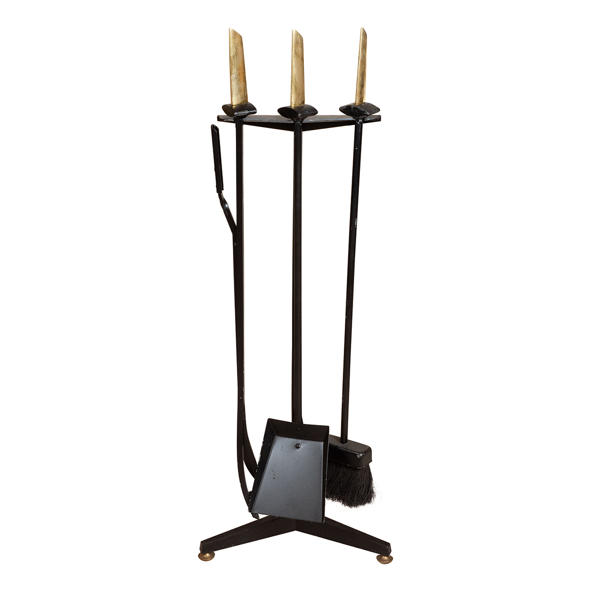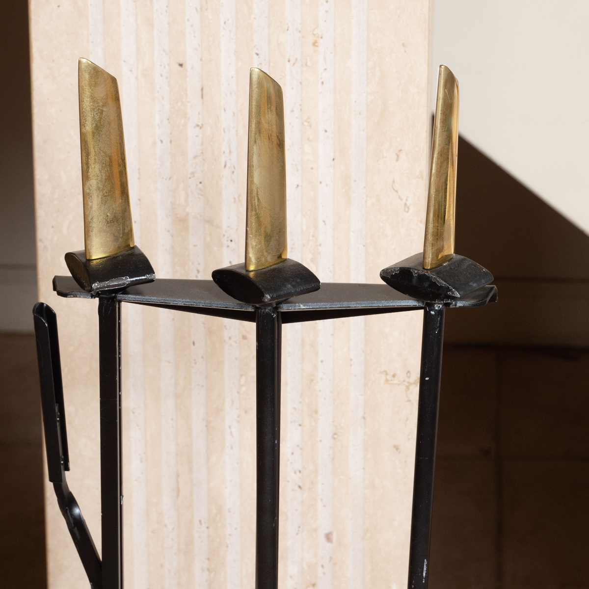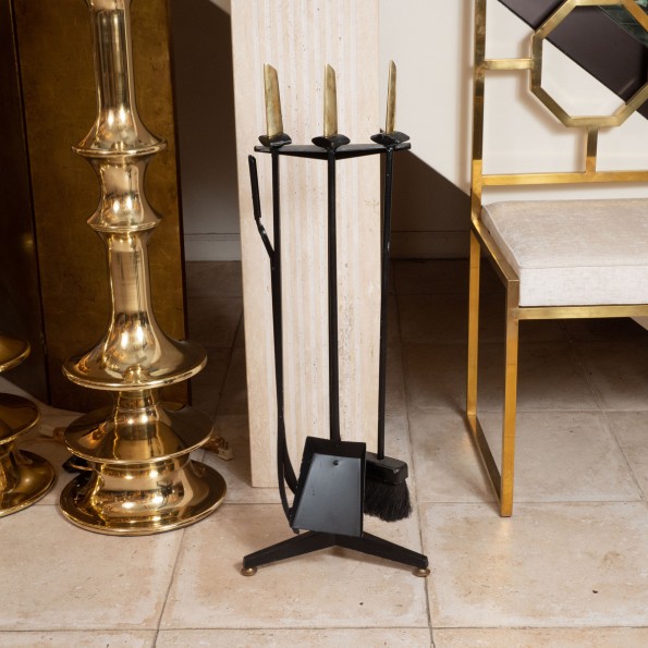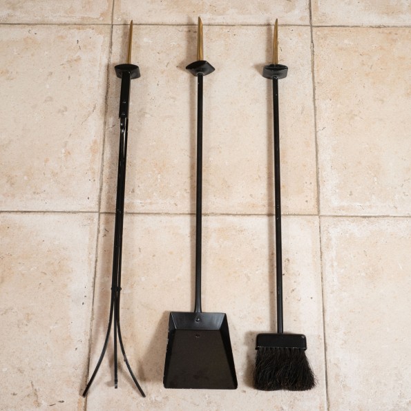 Modernist brass fire tool set
