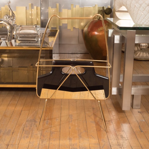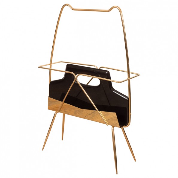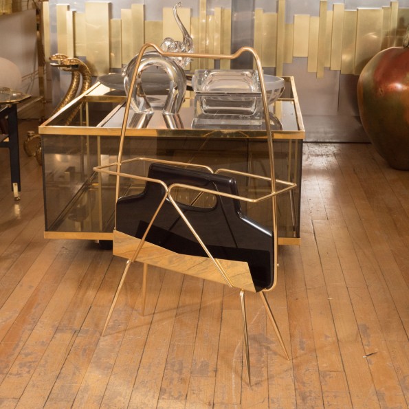 Brass and ebonized wood magazine rack