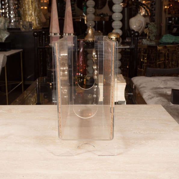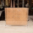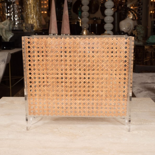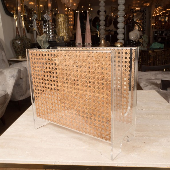Rattan and Lucite magazine rack