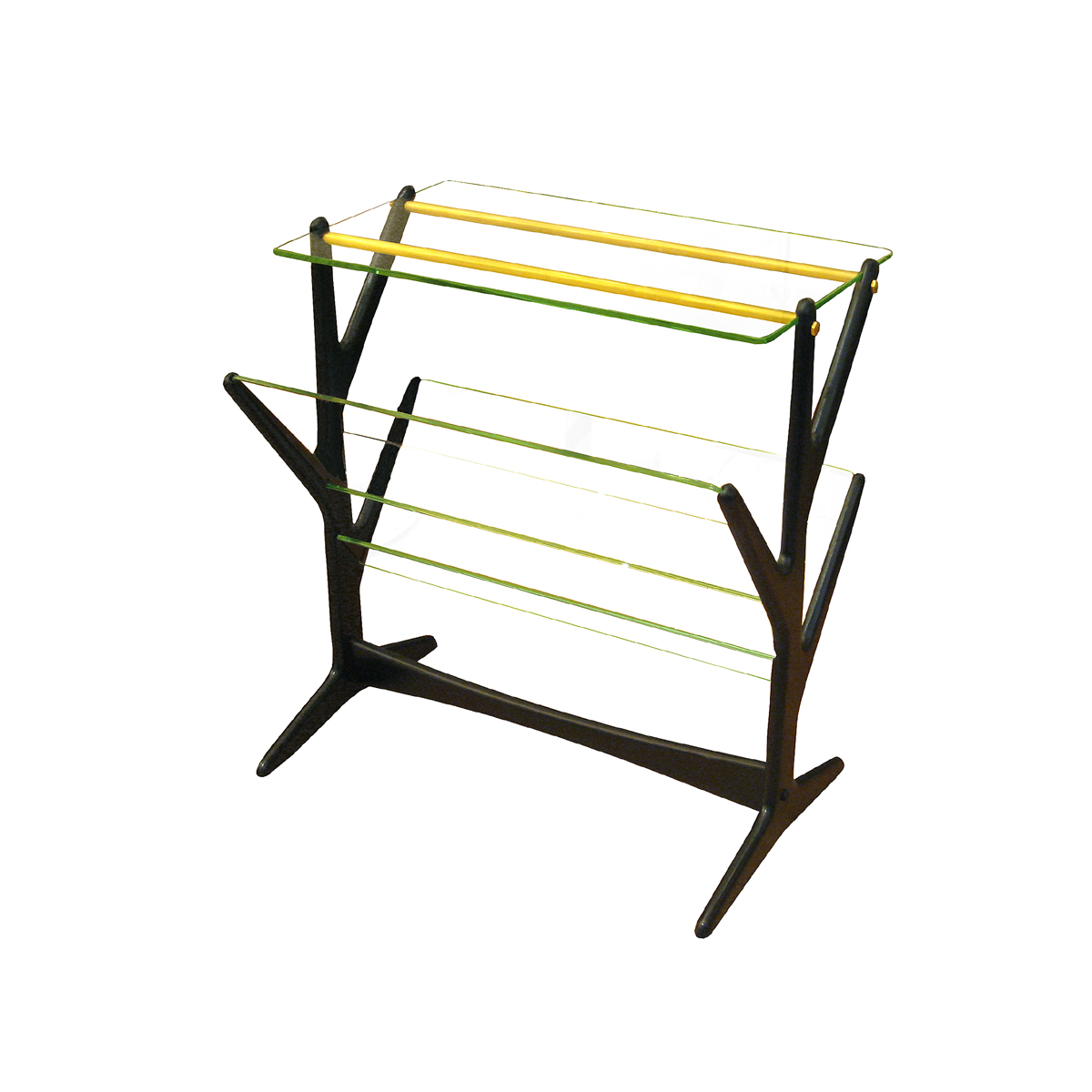 Two tier ebonized wood side table with magazine rack