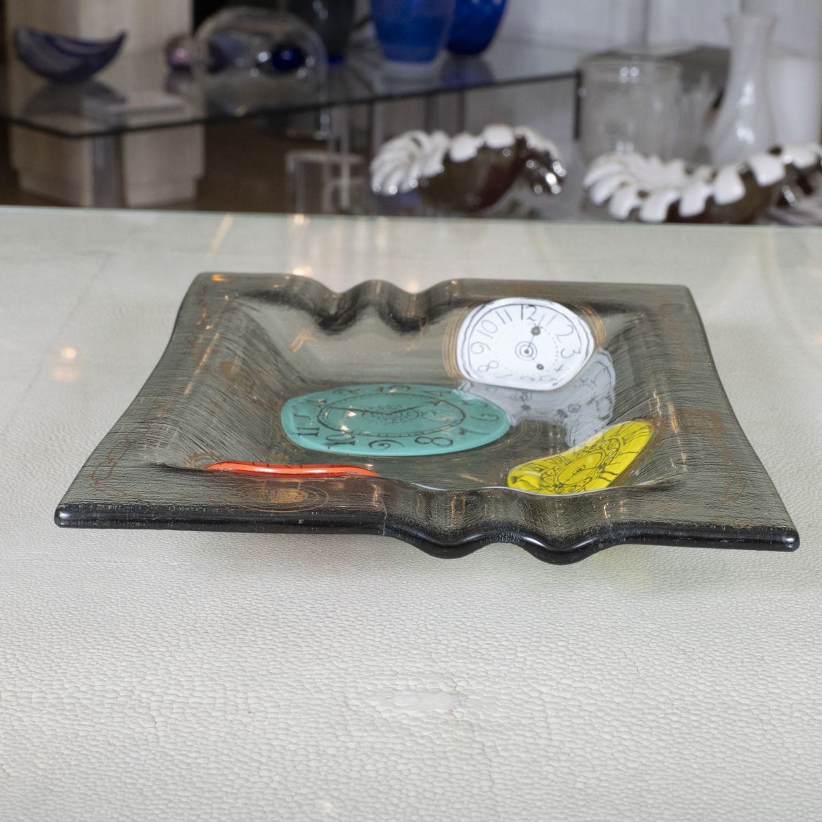 Petite "clock" smoked glass tray