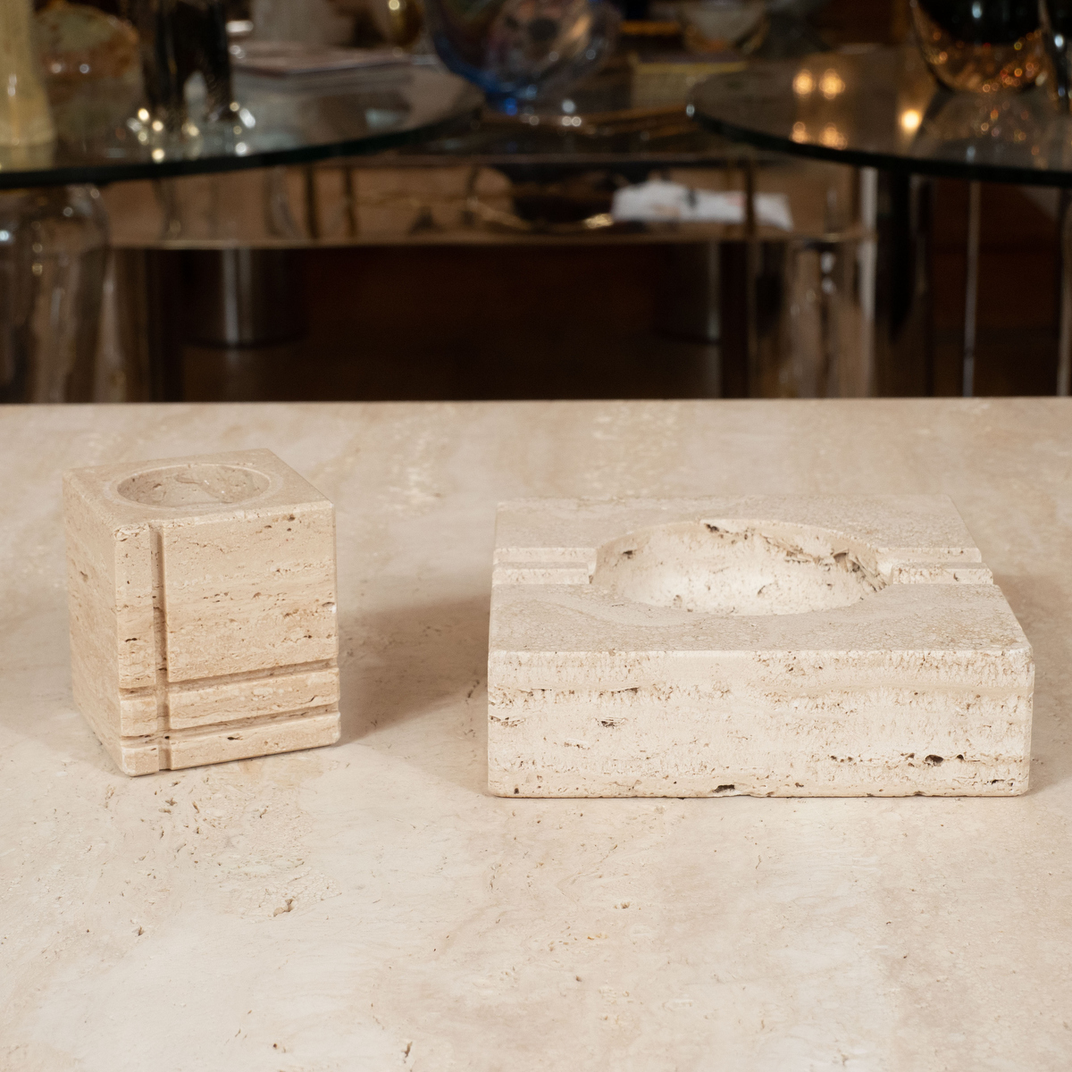 Set of travertine smoking accessories