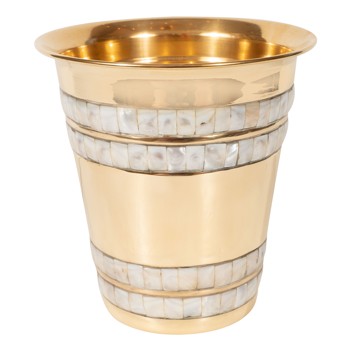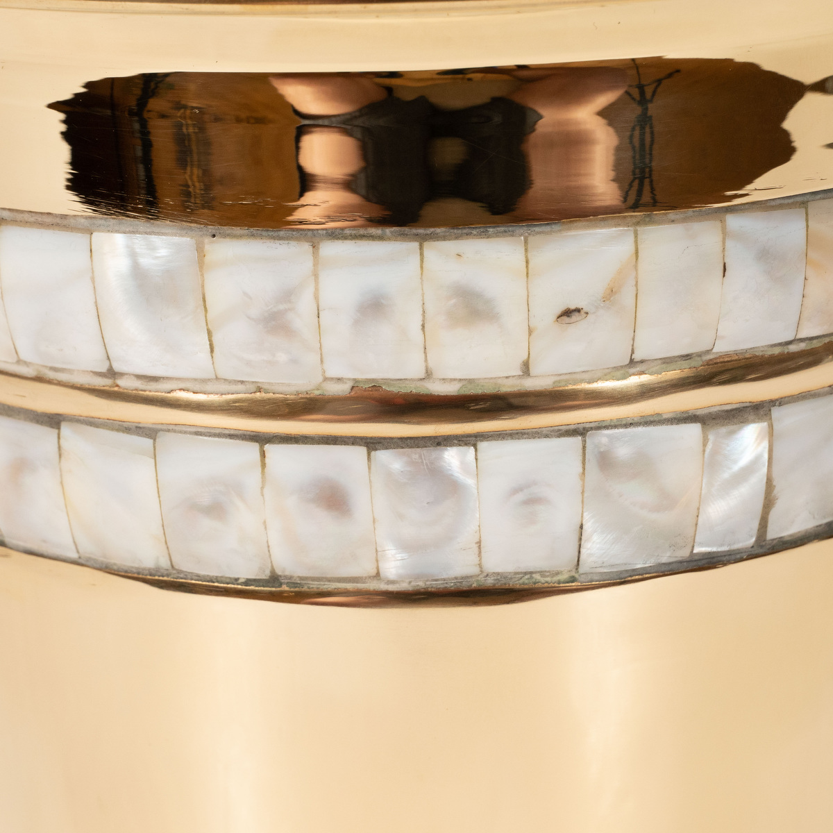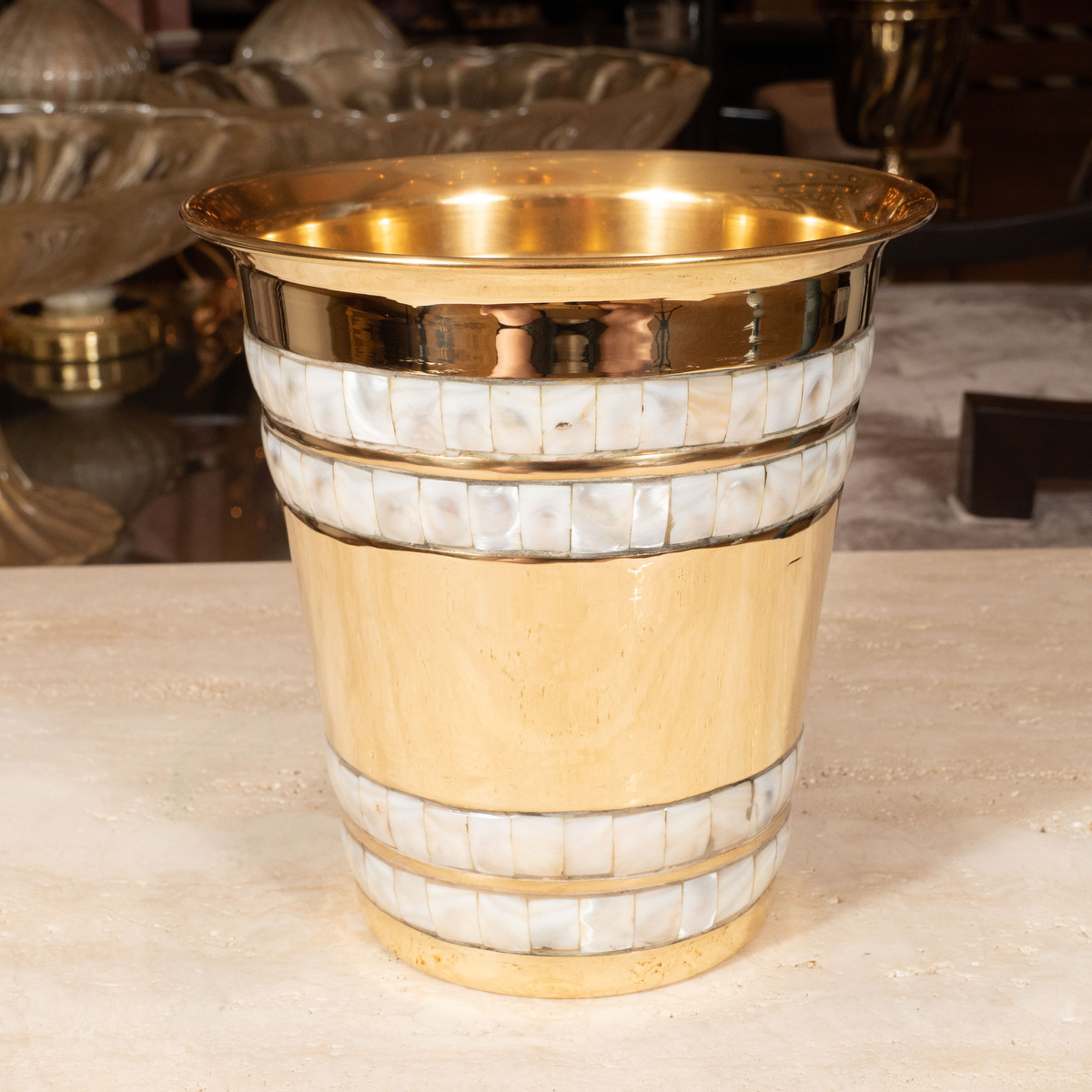 Brass wine cooler with inlaid abalone detail