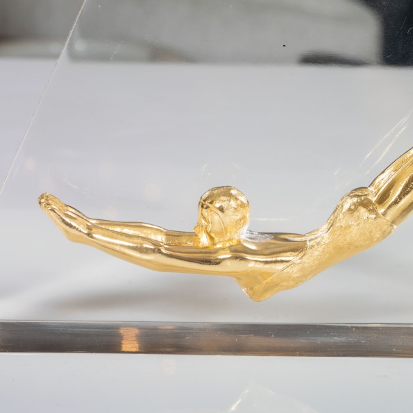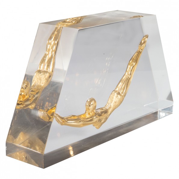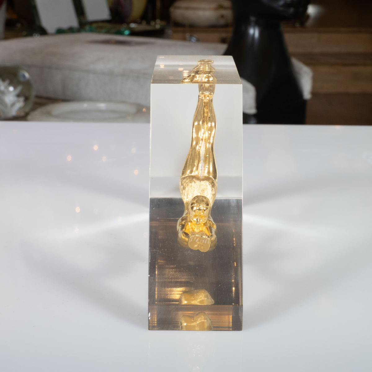 Lucite encased brass figurine object