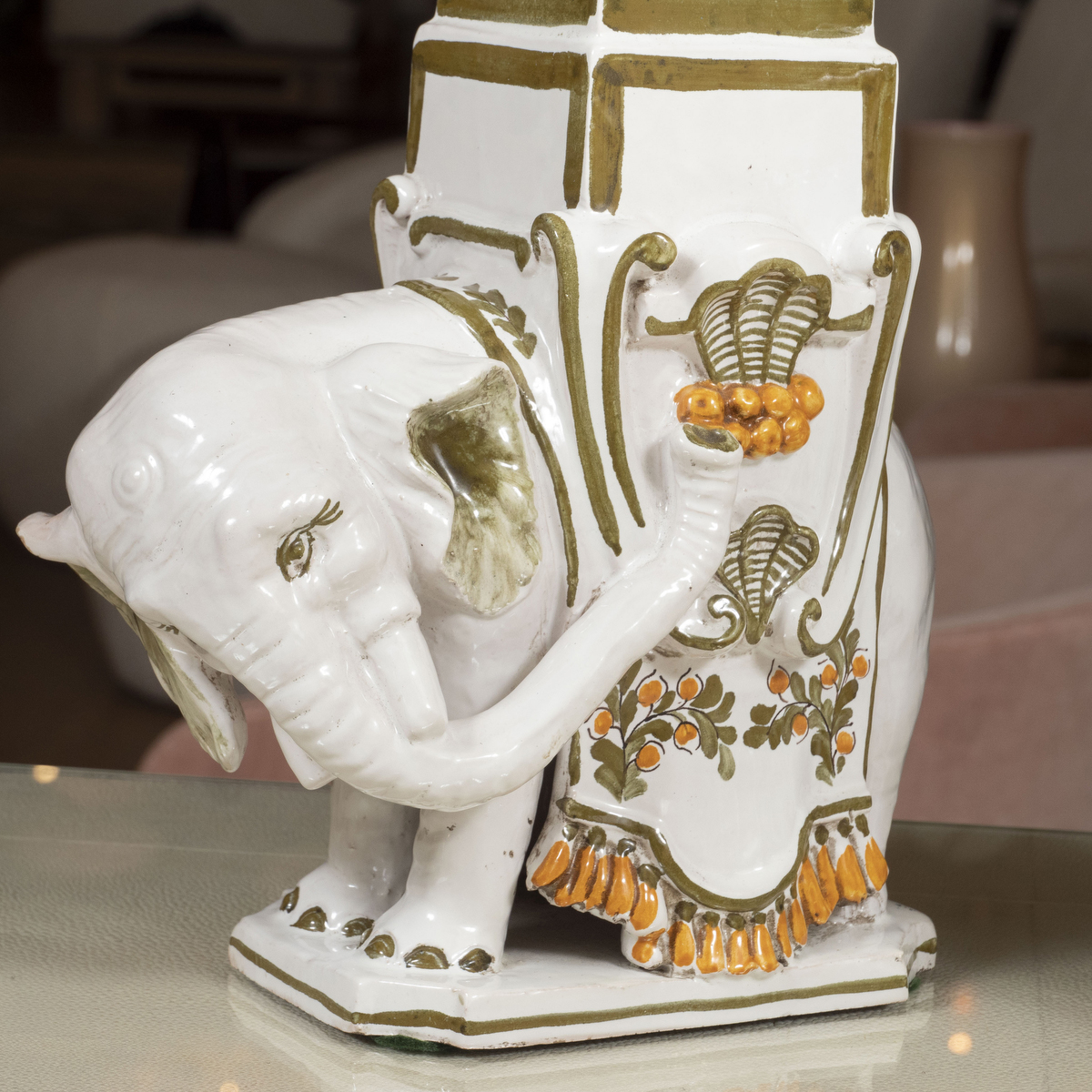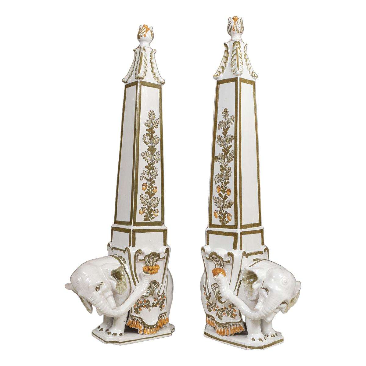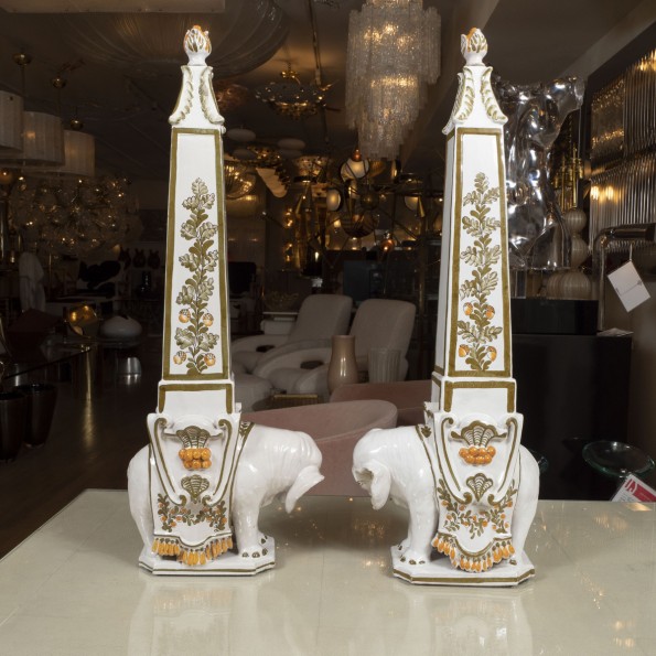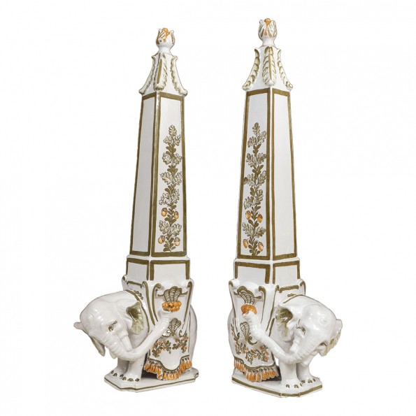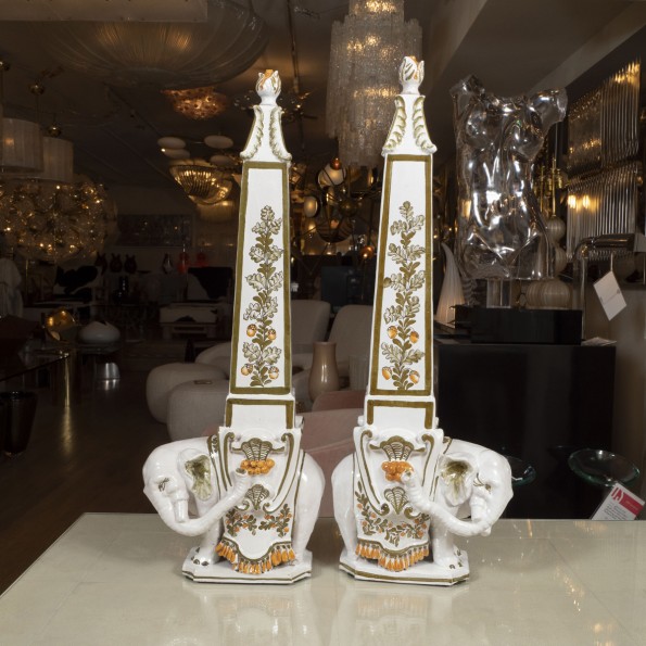 Pair of majolica elephant decanters