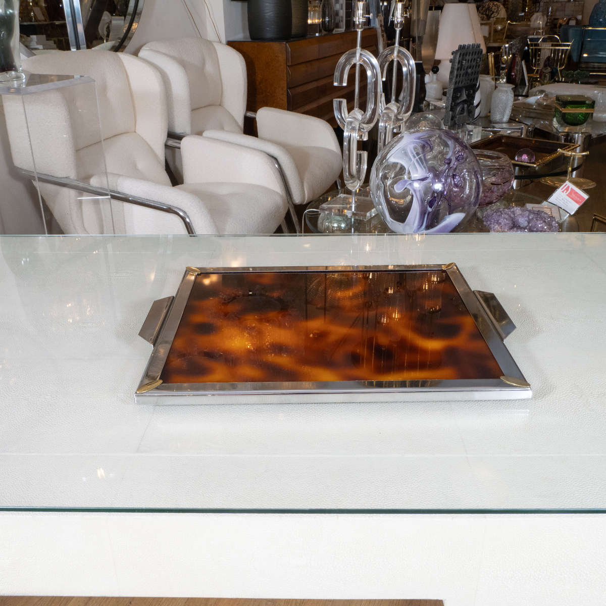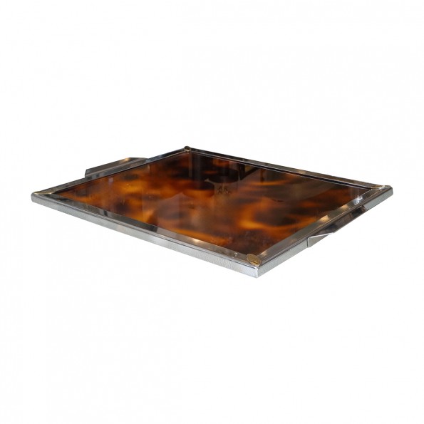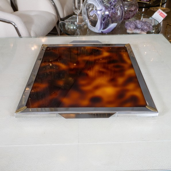 Square faux tortoise resin and brass tray