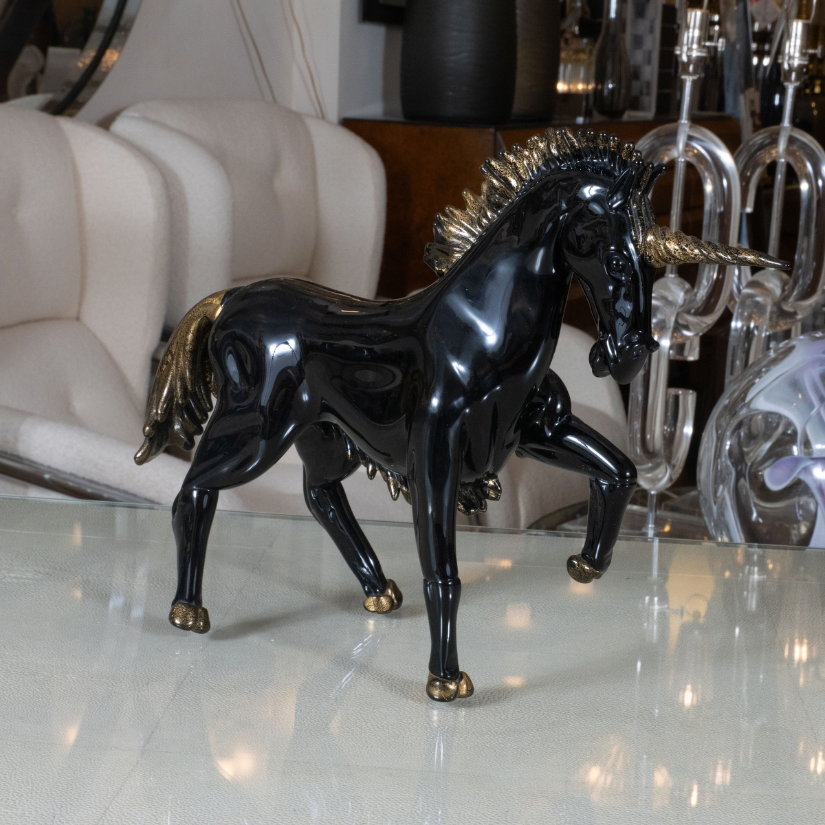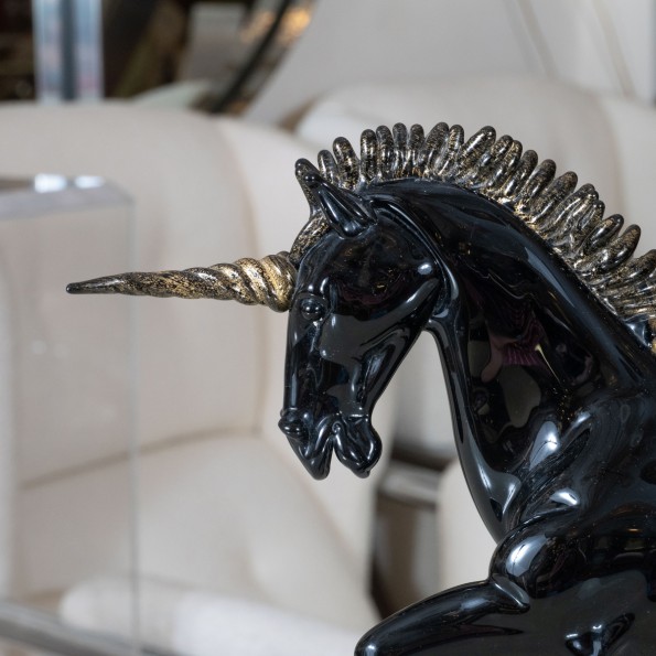 Black Murano glass unicorn sculpture