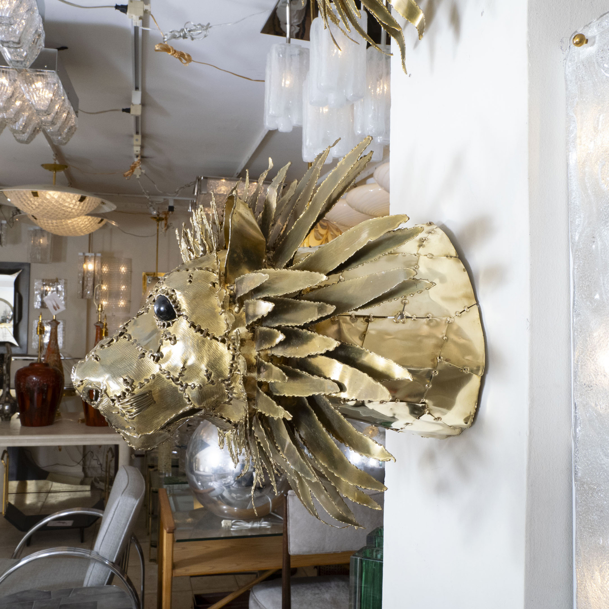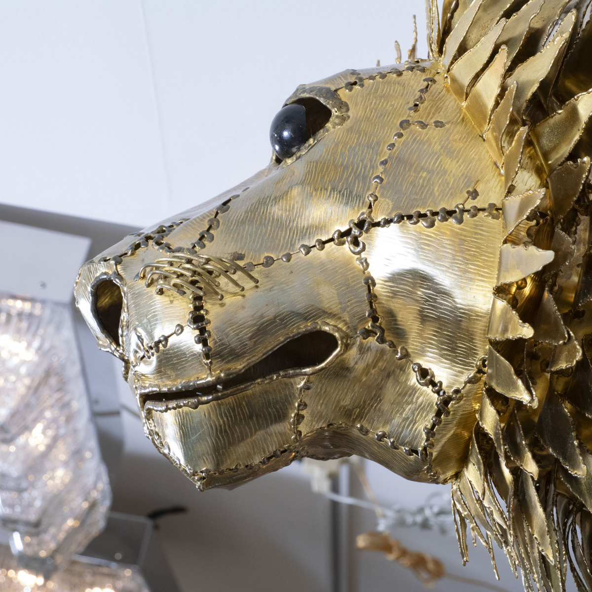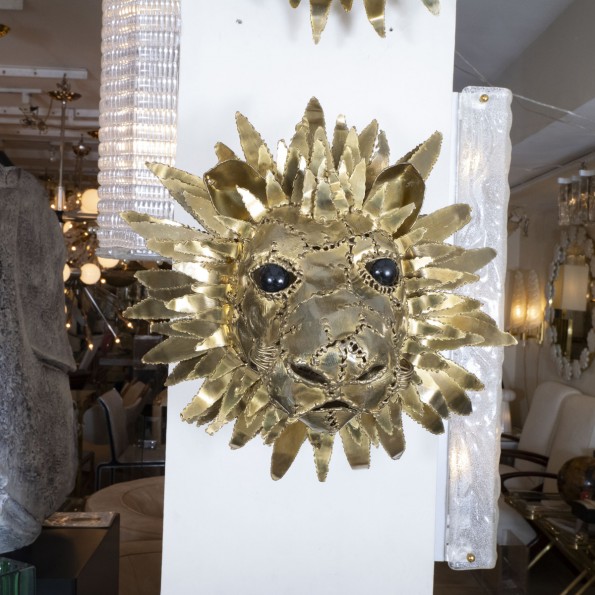 Brass lion head sculpture