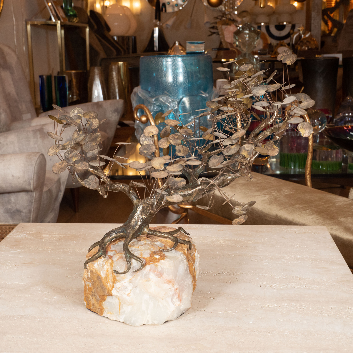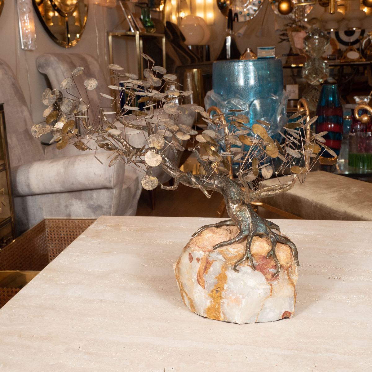 Bronze tree sculpture with rocky base