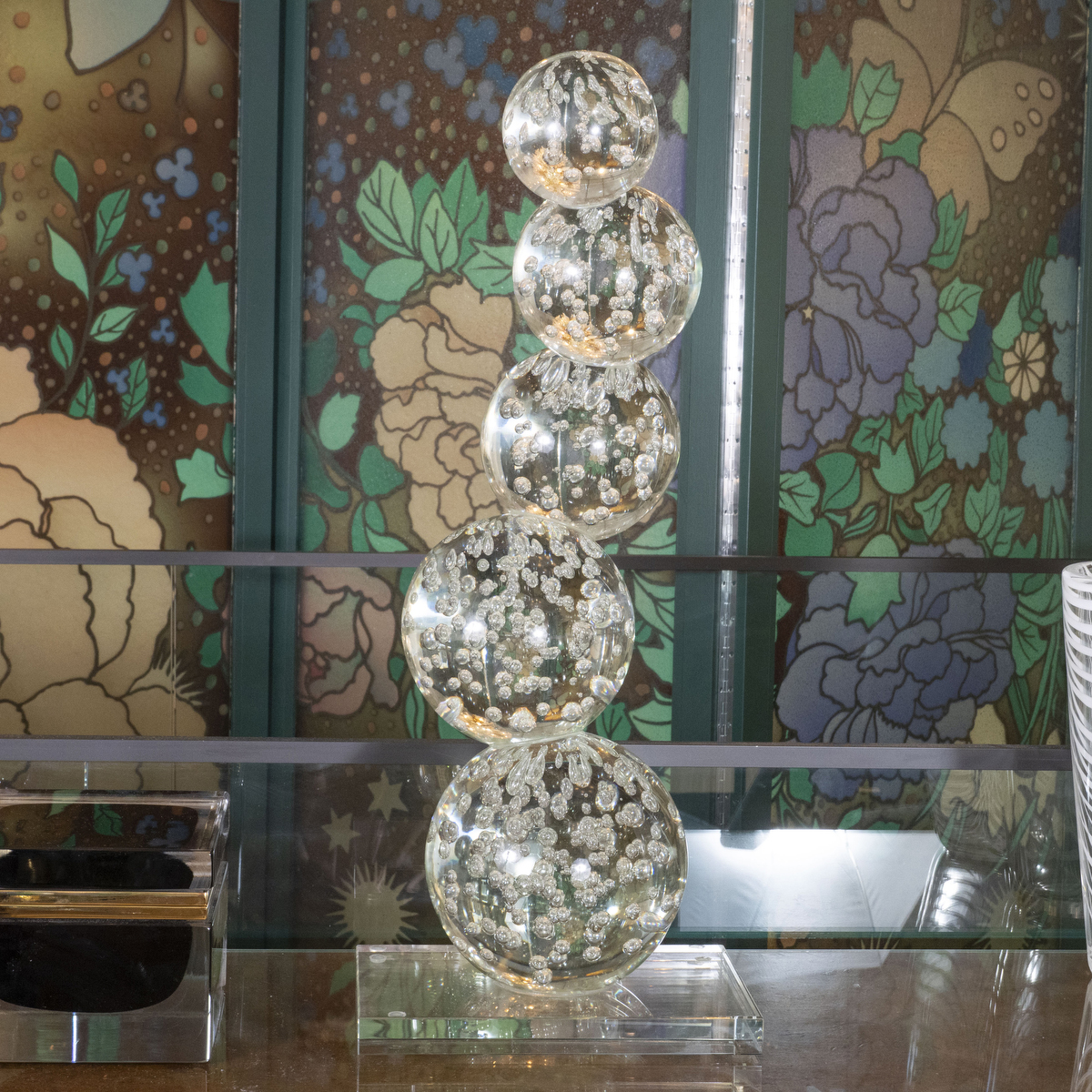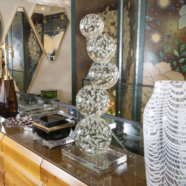 Cantilevered clear Murano glass sculpture