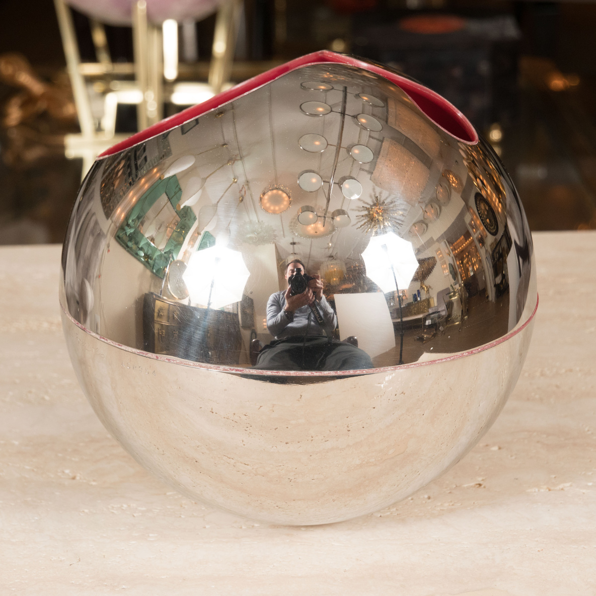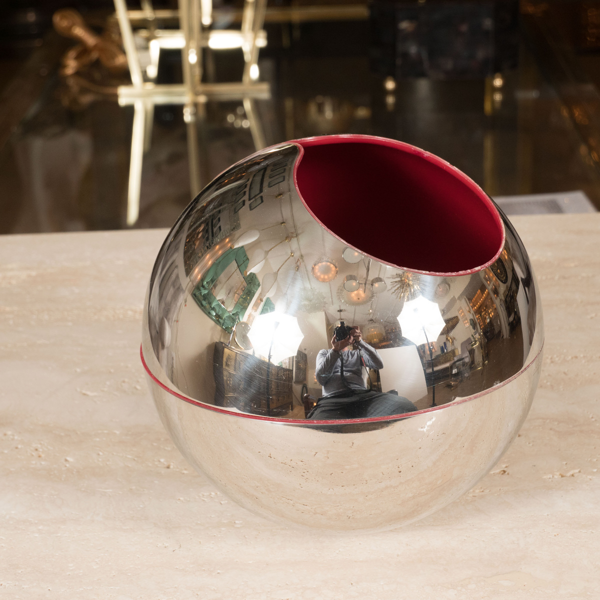 Chrome spherical sculpture by Arnoldo Pomodoro