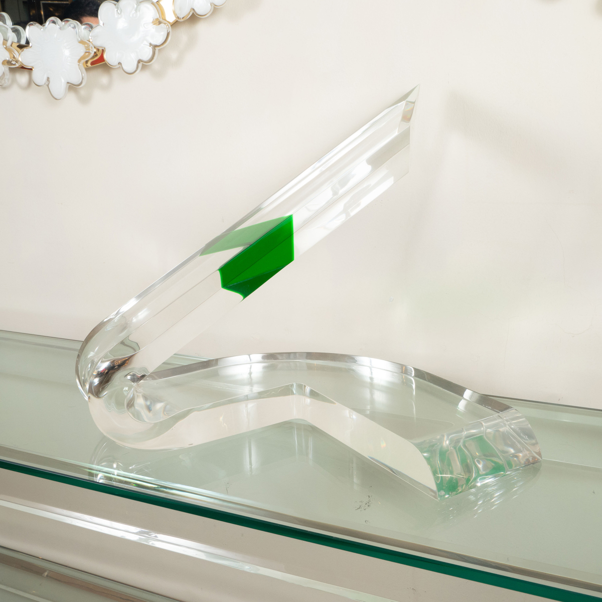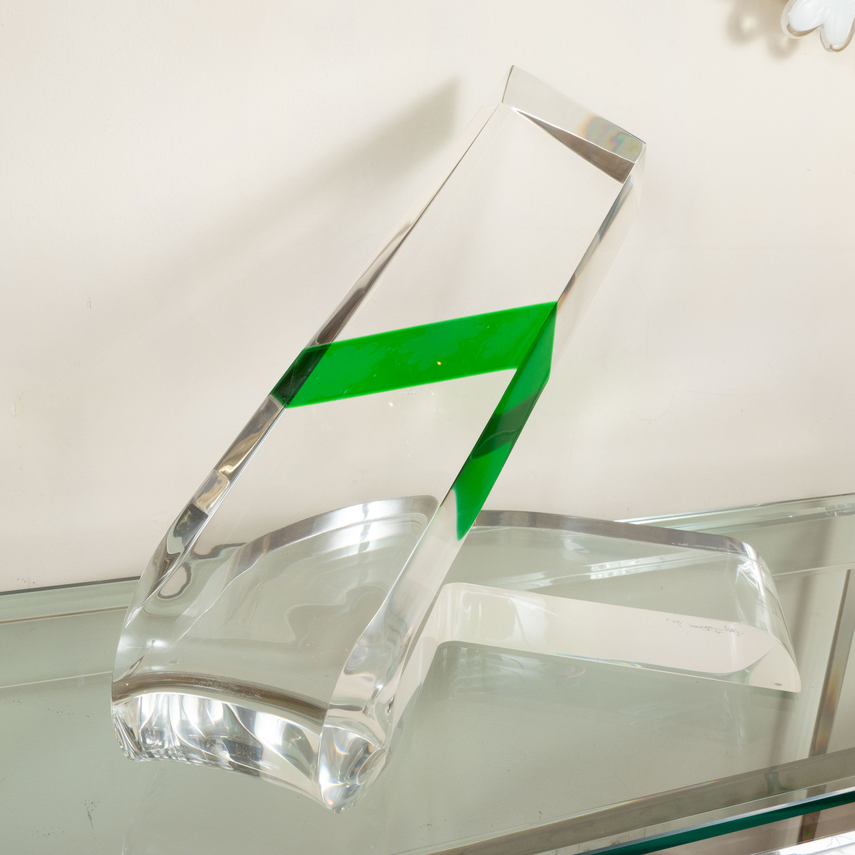 Lucite sculpture with green design by Gary Gutterman