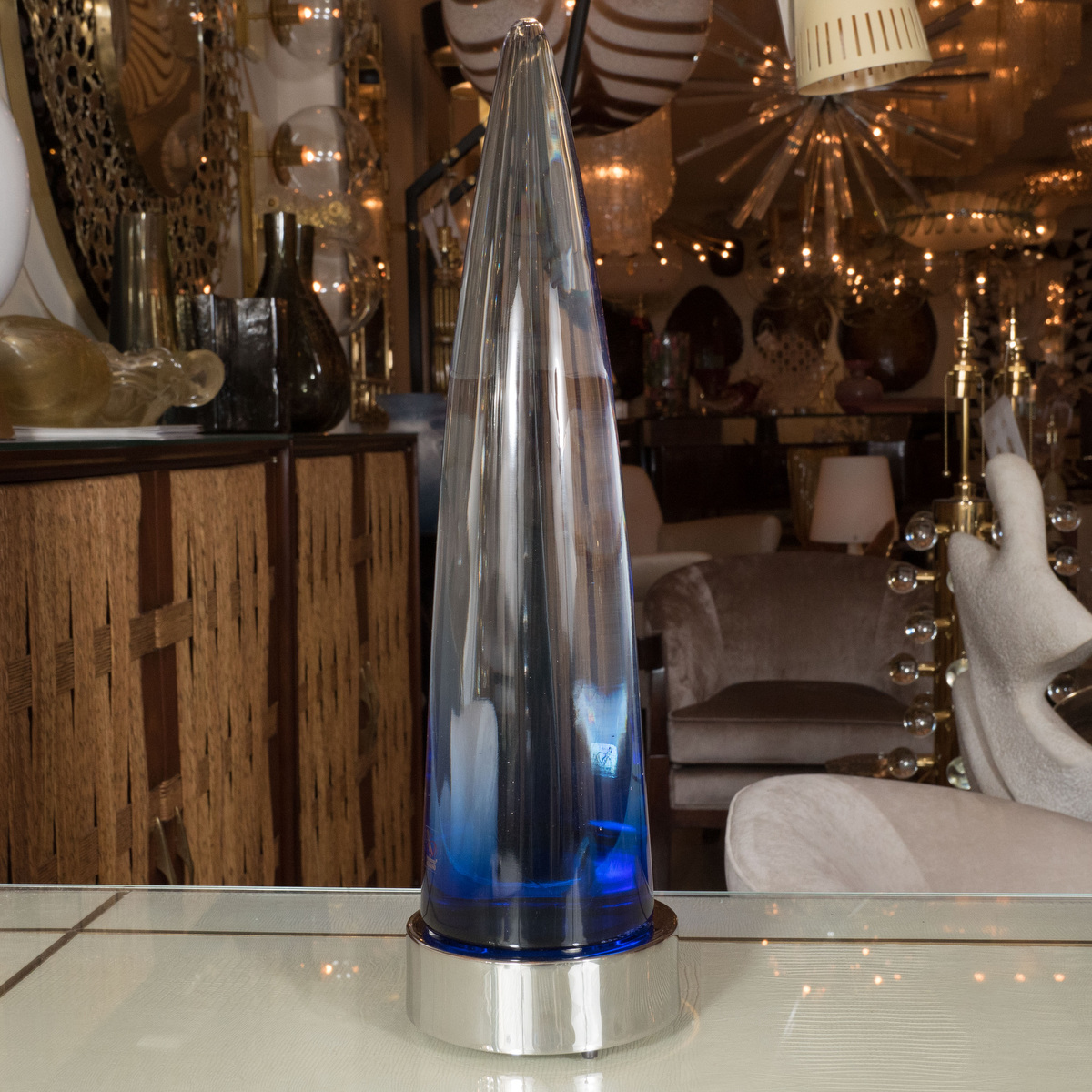 Pair of deep blue Murano glass sculptures