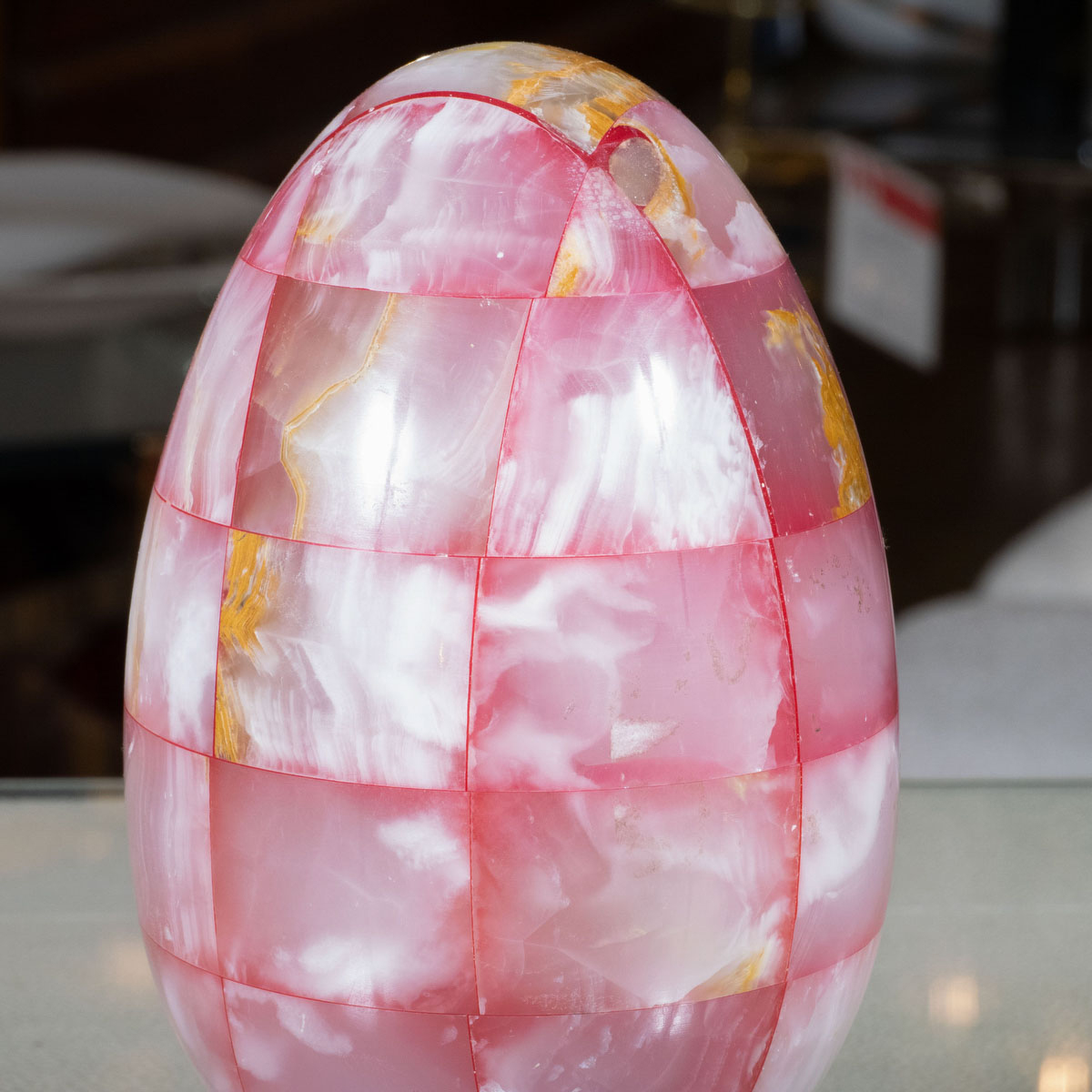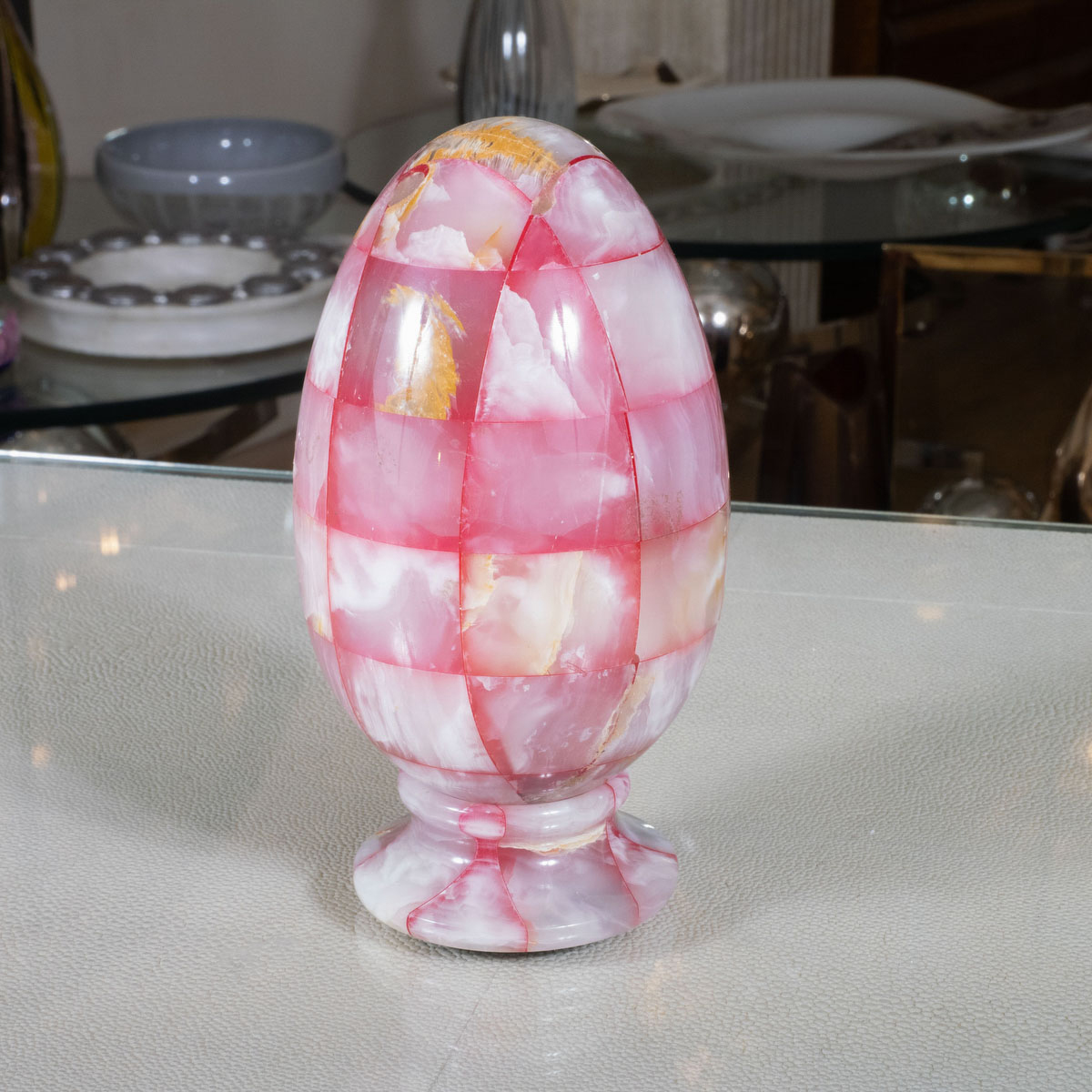Pink onyx ovoid sculpture