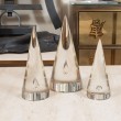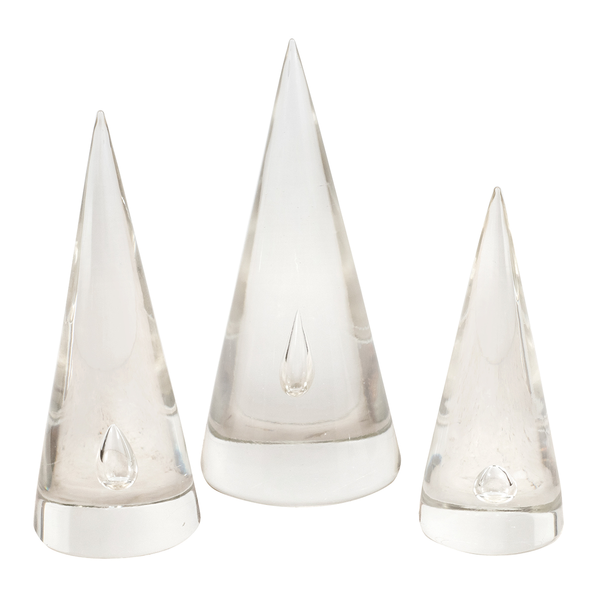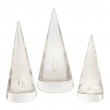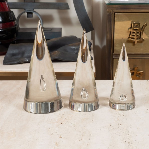 Trio of clear glass conical sculptures