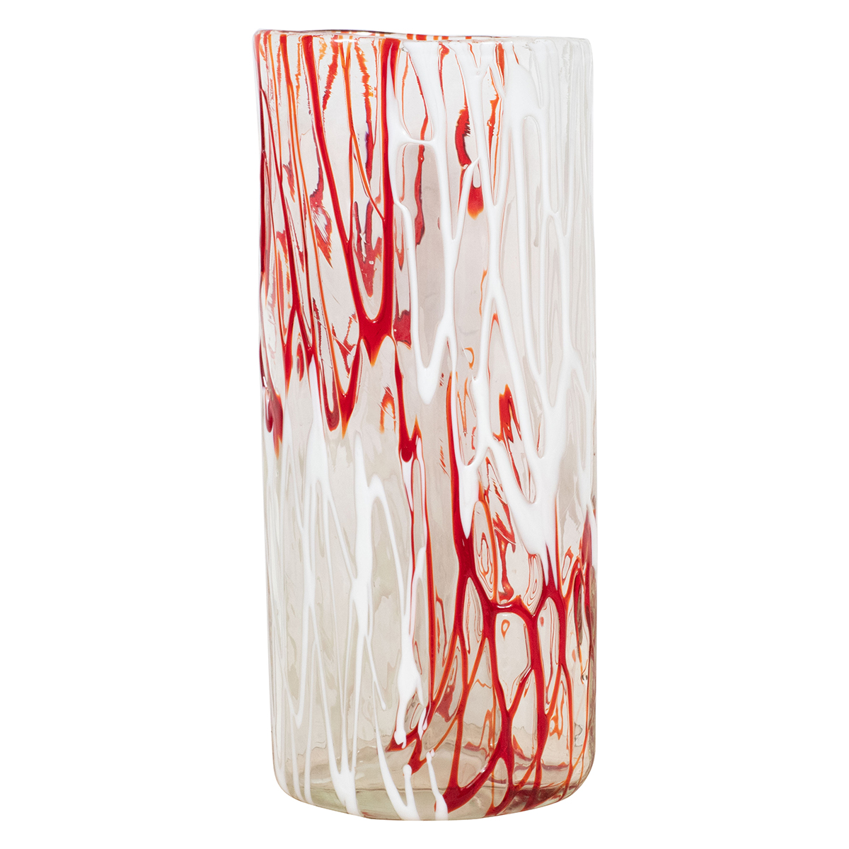 Clear Murano tall vase with red and white design