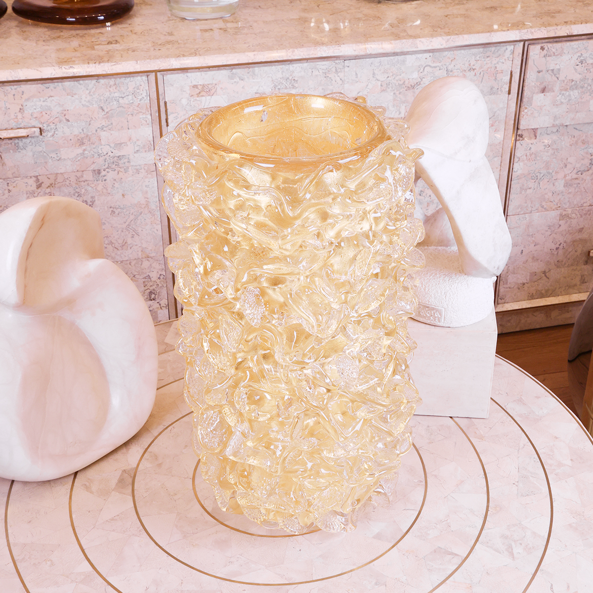 Monumental gold leaf Murano glass vase by Fabiano Amadi
