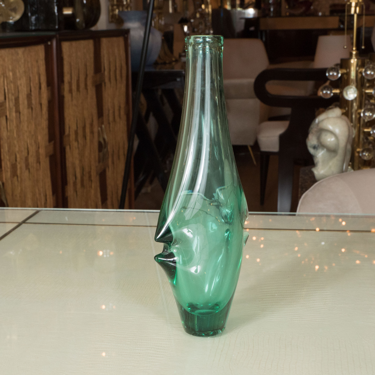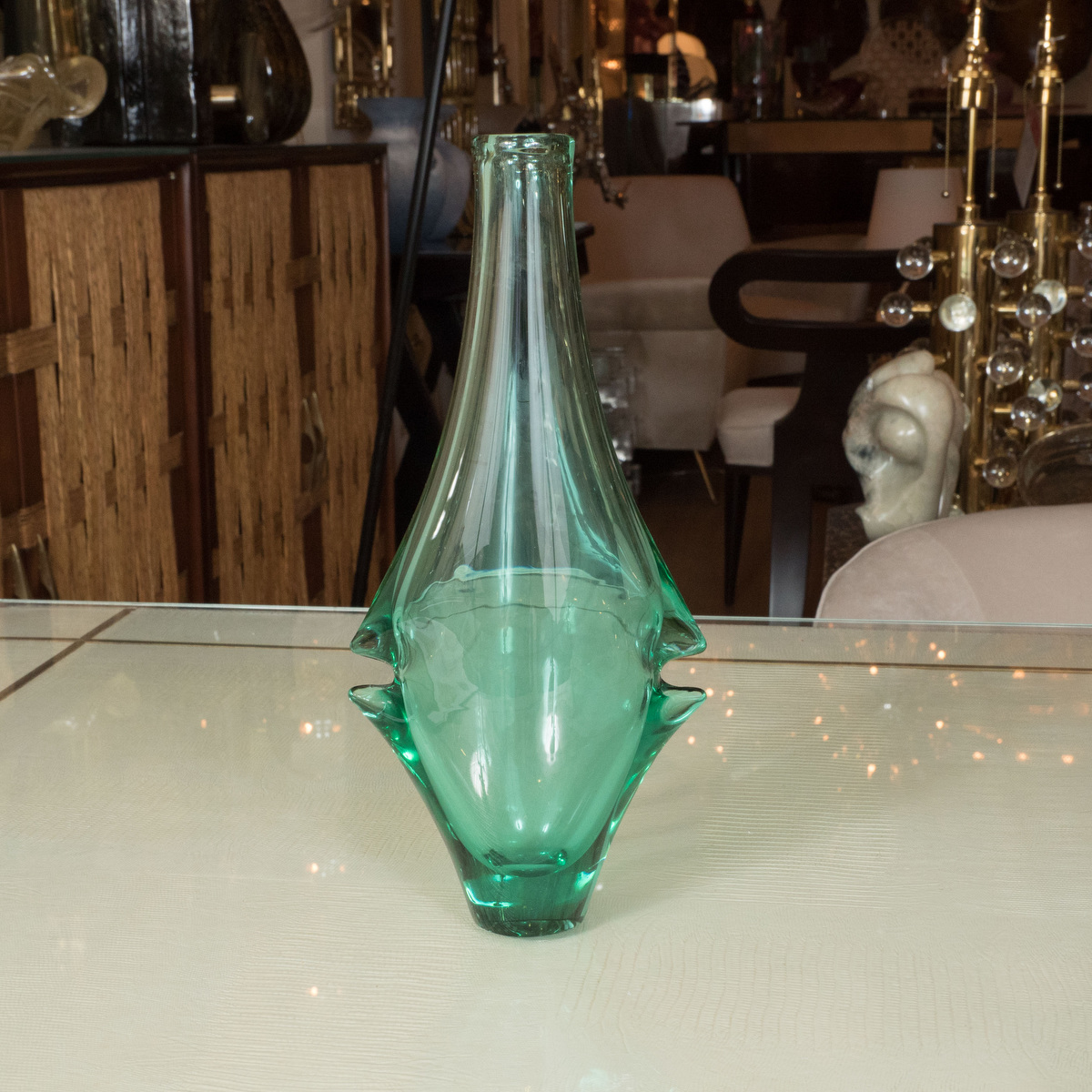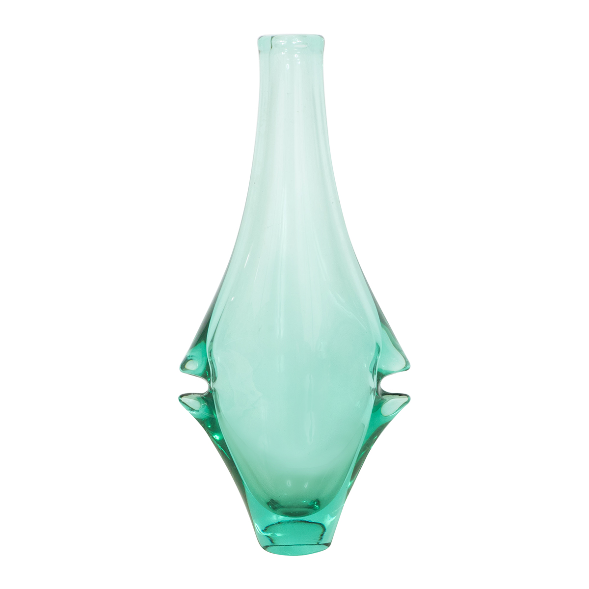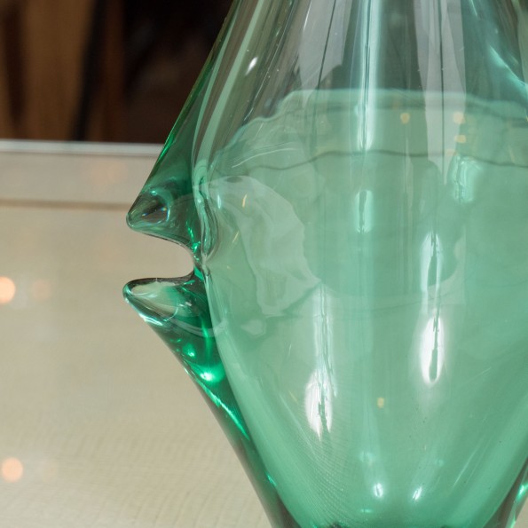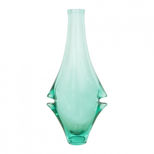 Petite aquamarine glass amphora shaped vase
