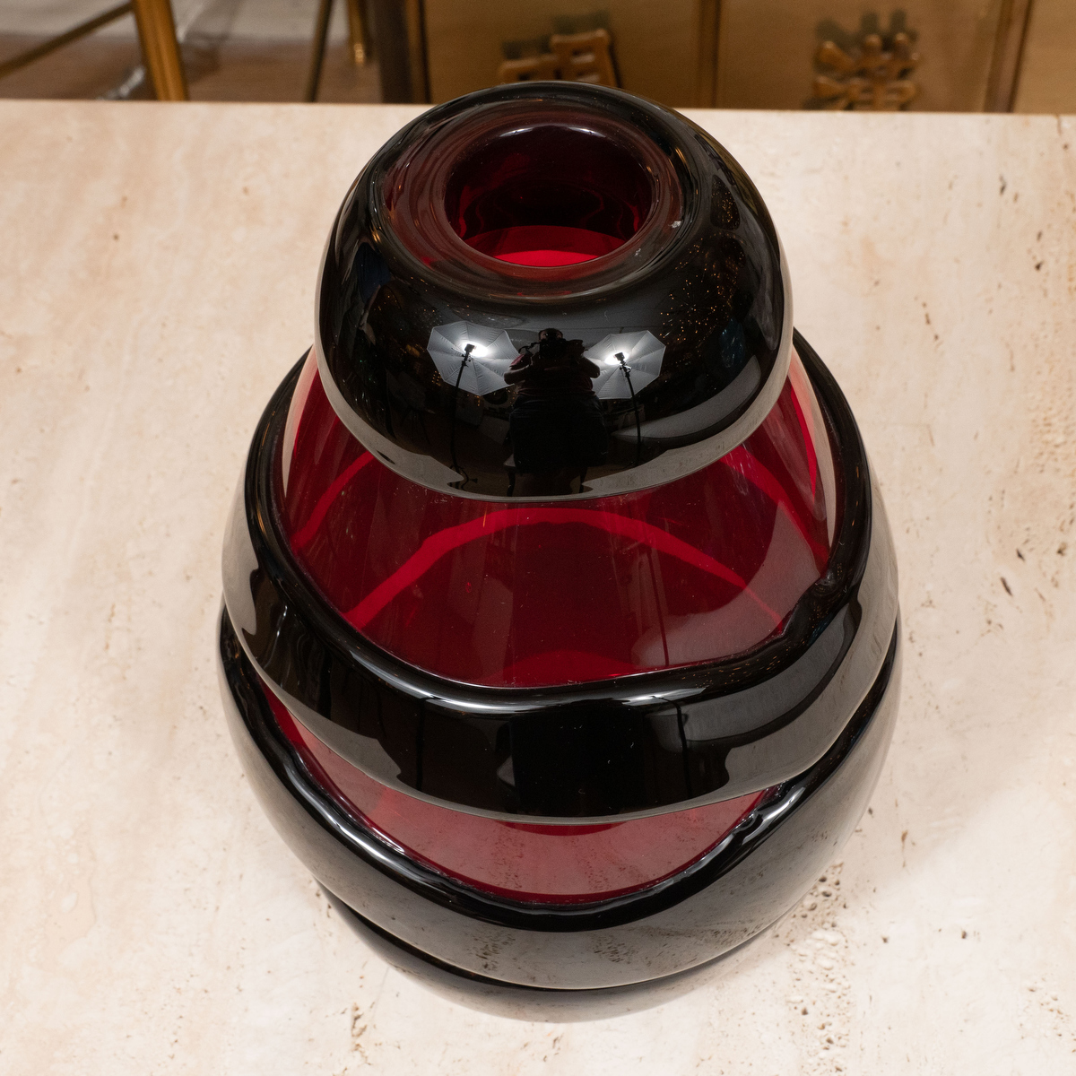Red Murano glass vase by Paolo Crepax for Vistosi