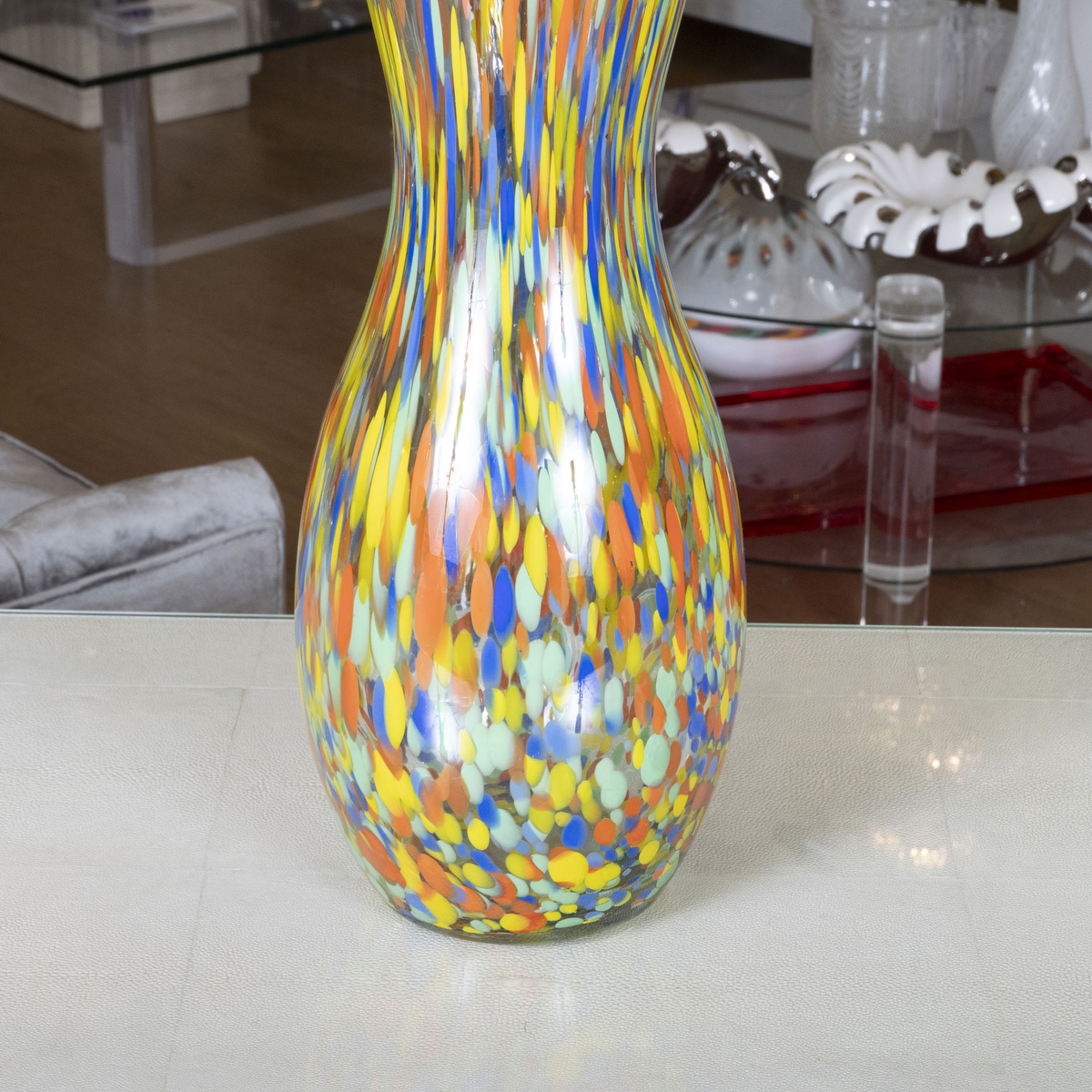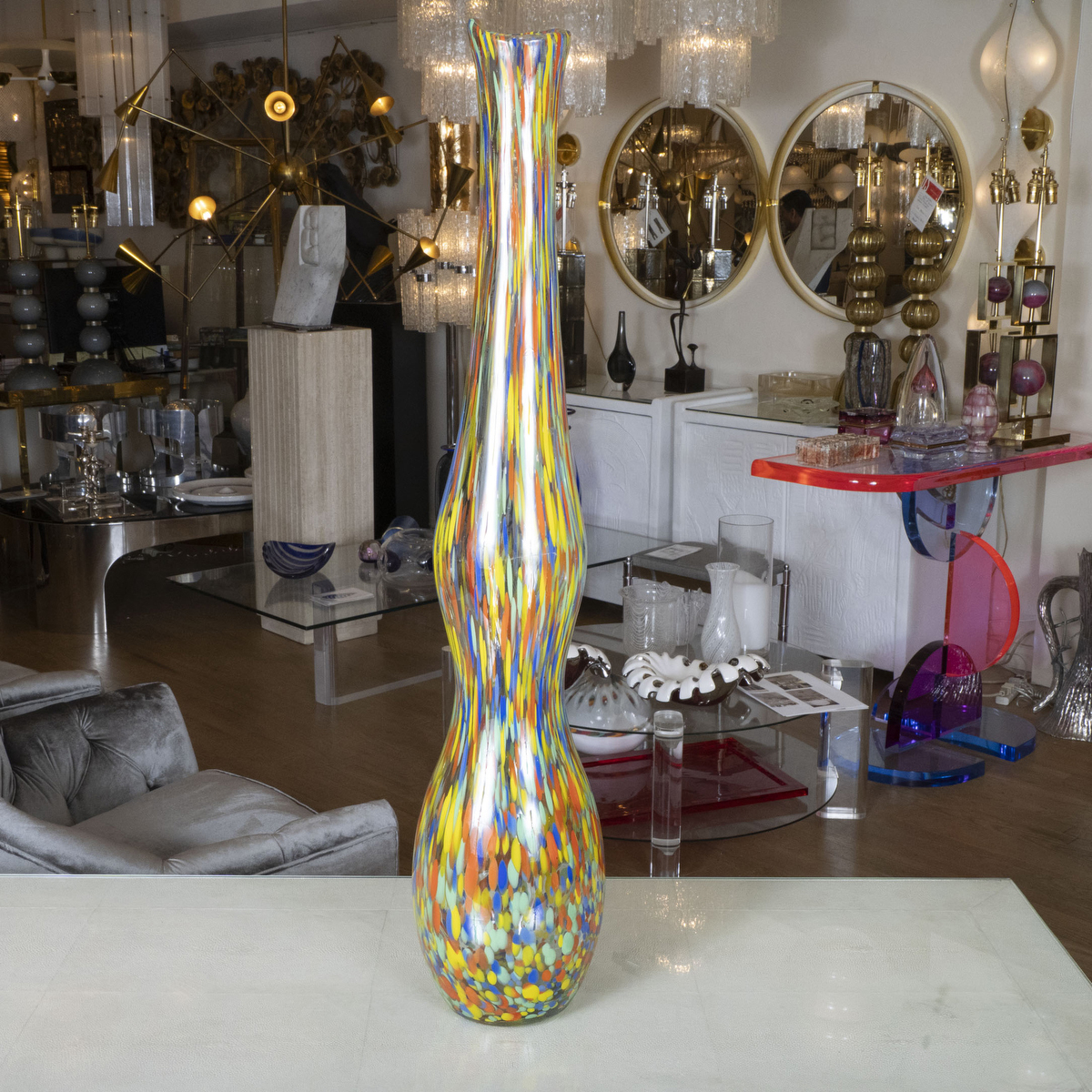 Tall multicolored Murano glass vase
