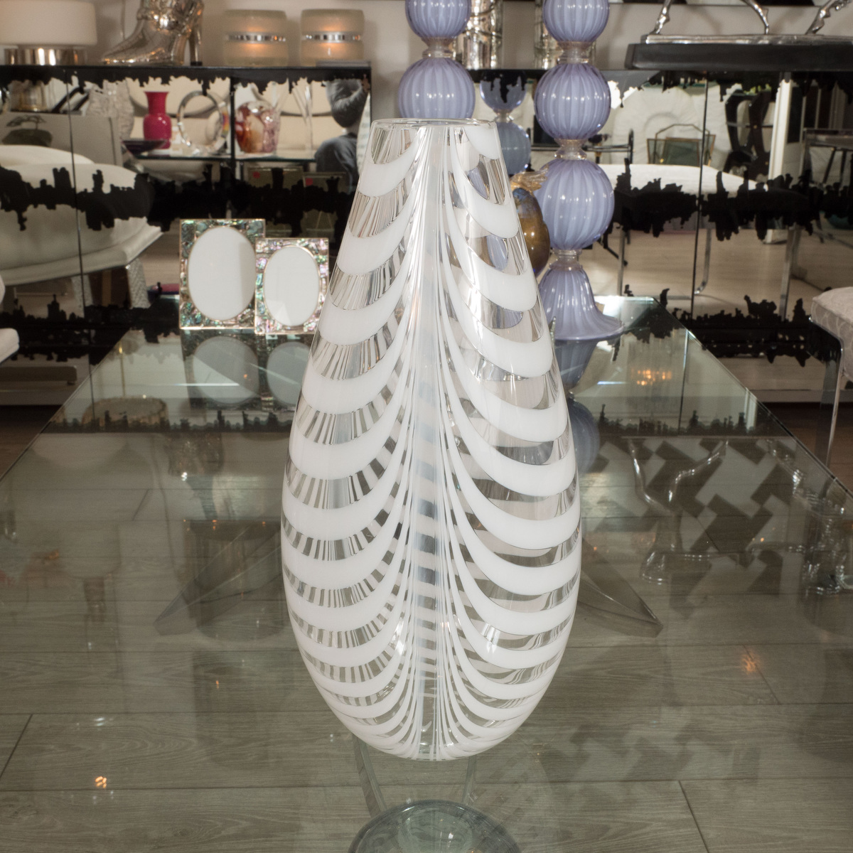 Iridescent Murano glass vase with applied elements