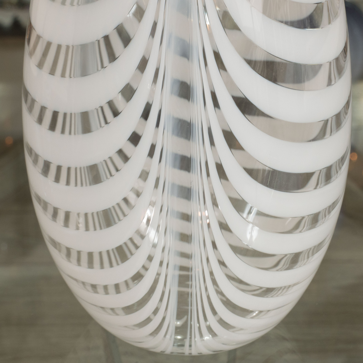 Striped ovoid yellow, blue and green murano glass vase