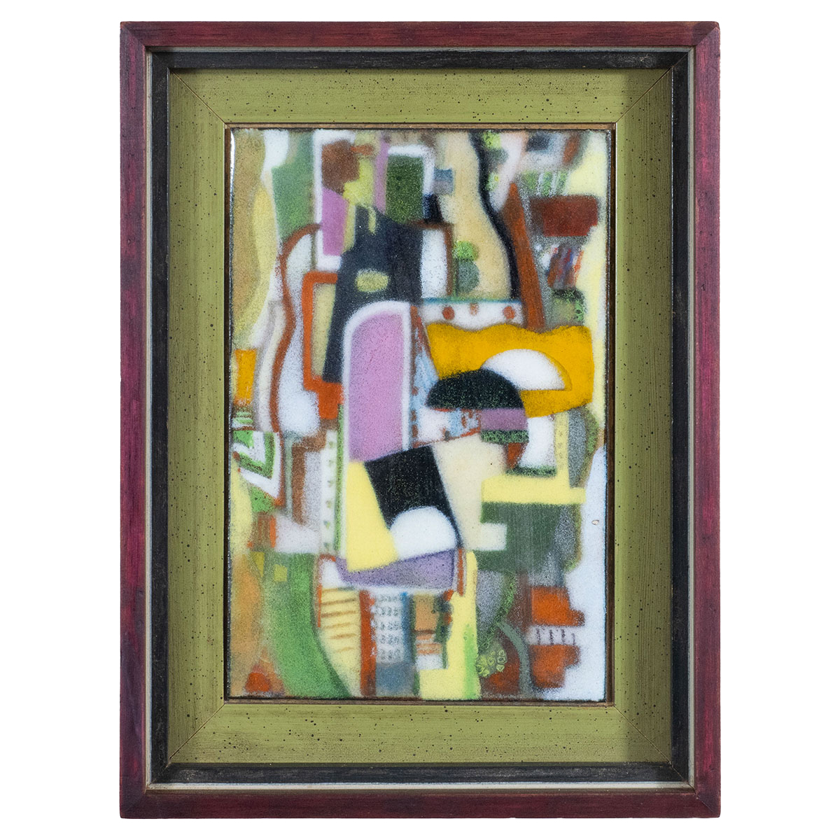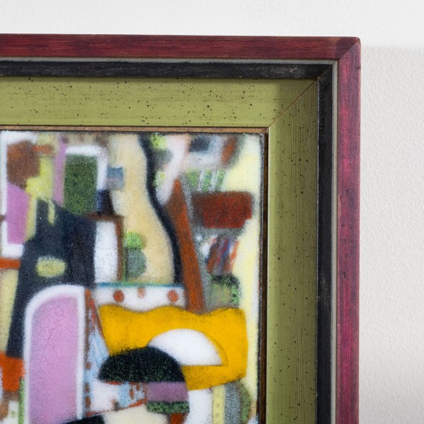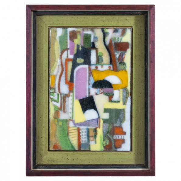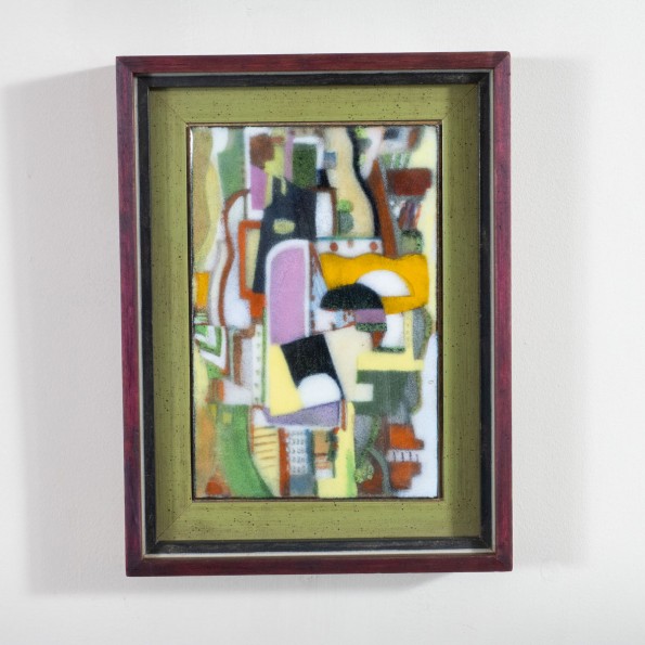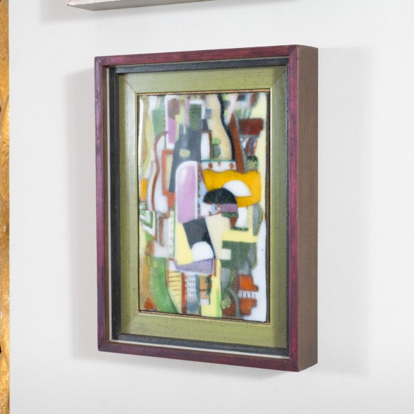 Petite framed multicolor enameled abstract artwork