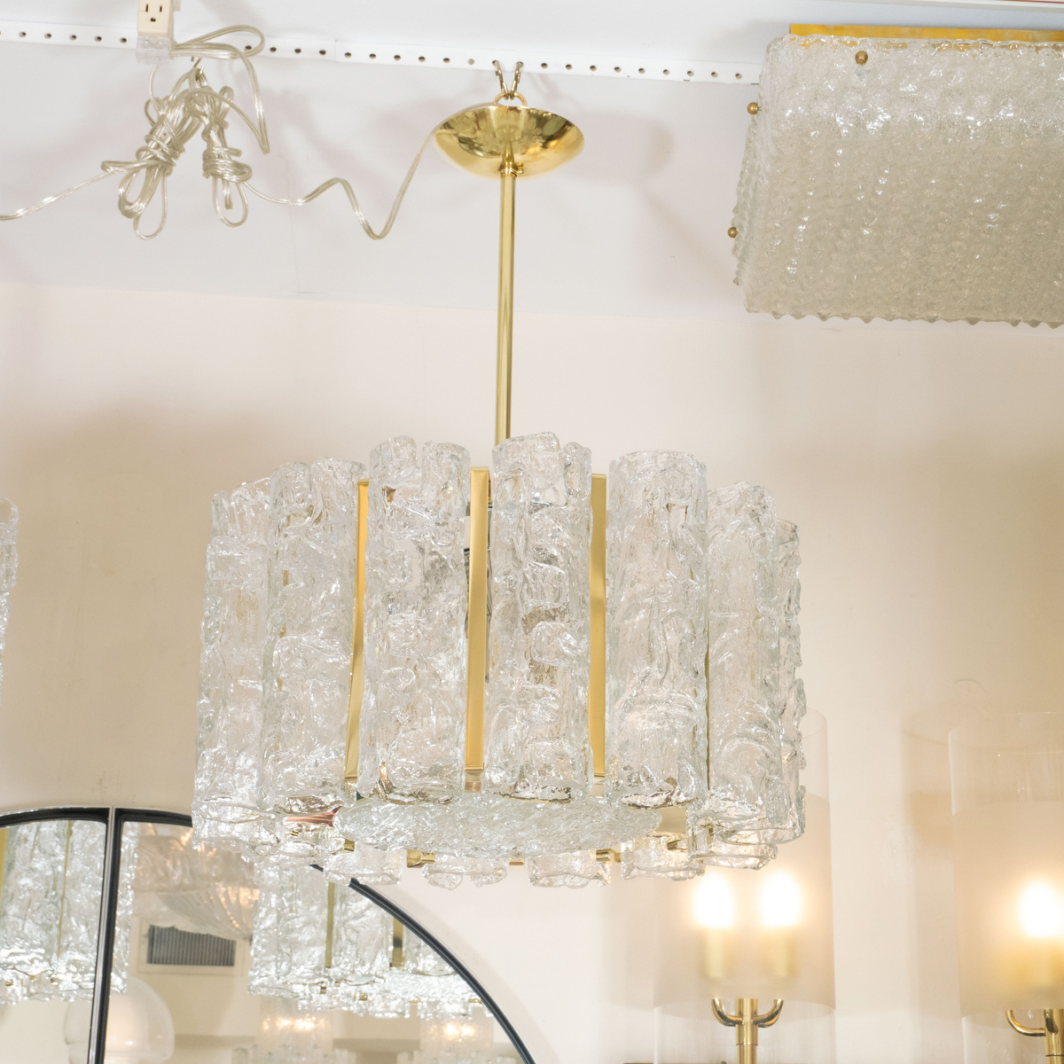 Brass drum form pendant fixture by Kalmar