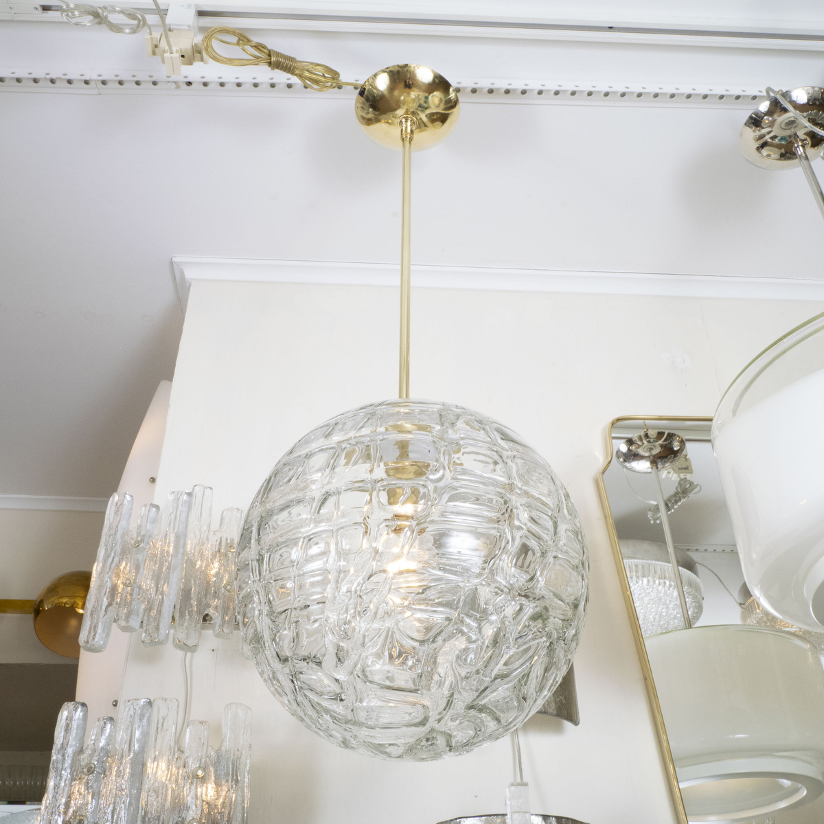 Brass pendant with applied glass design