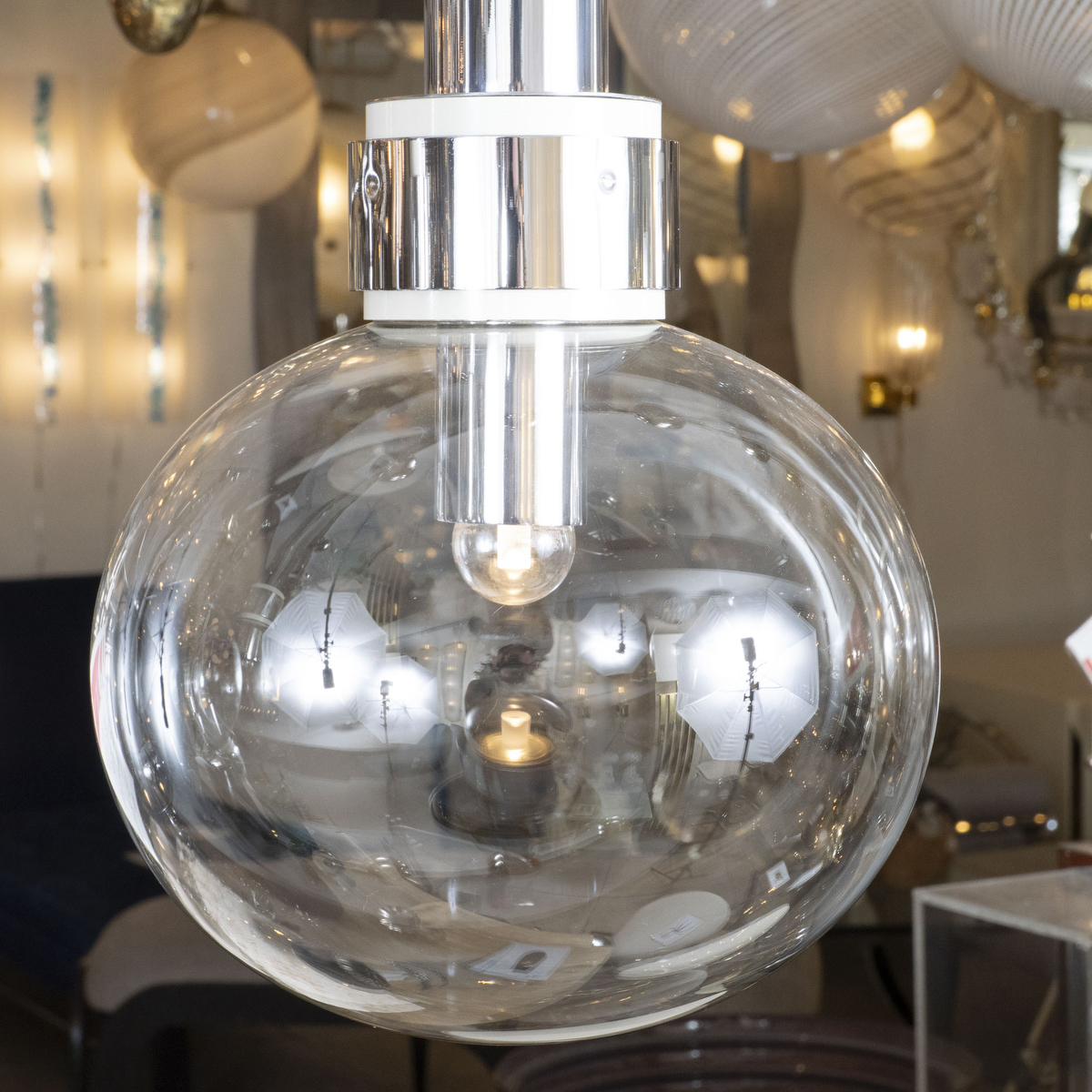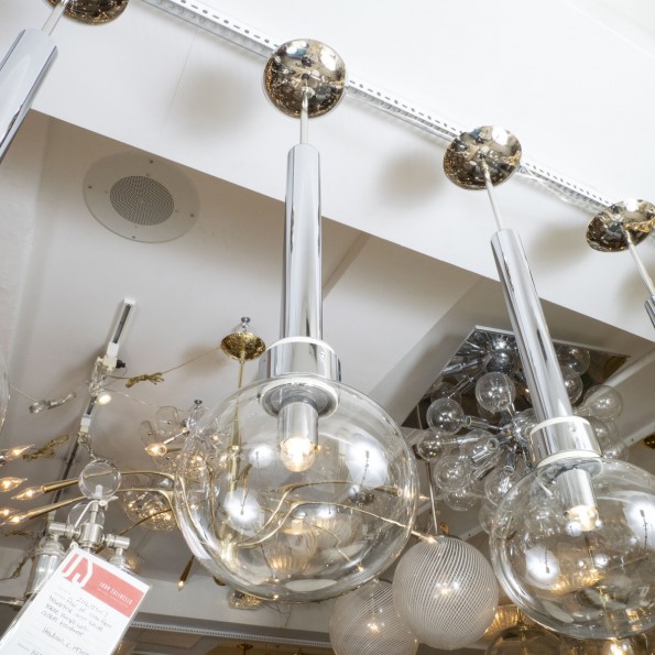 Long vertical polished nickel ceiling fixture by Vistosi