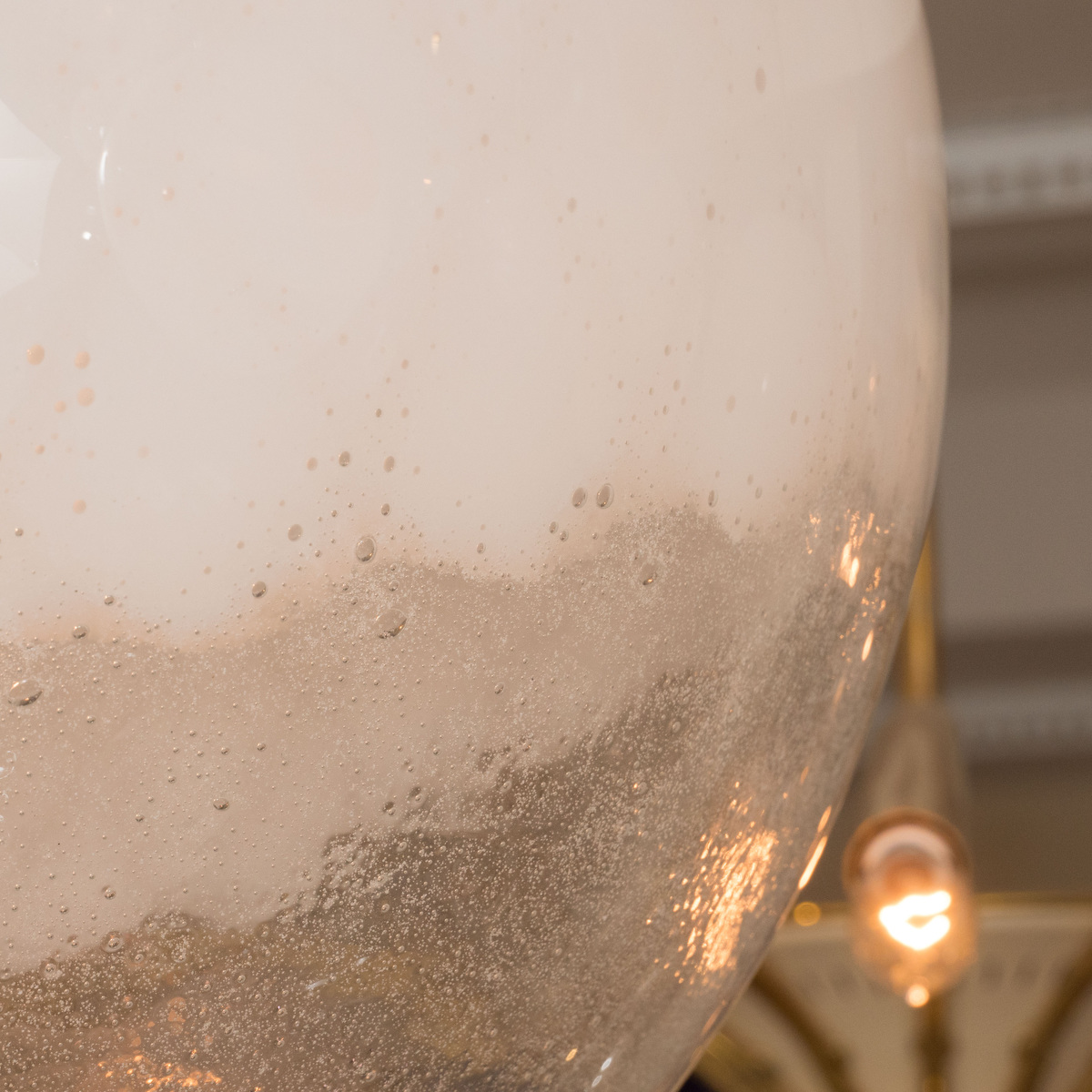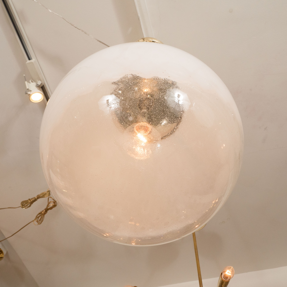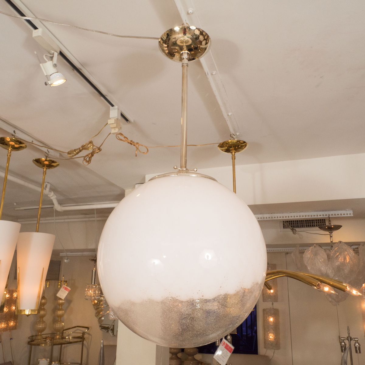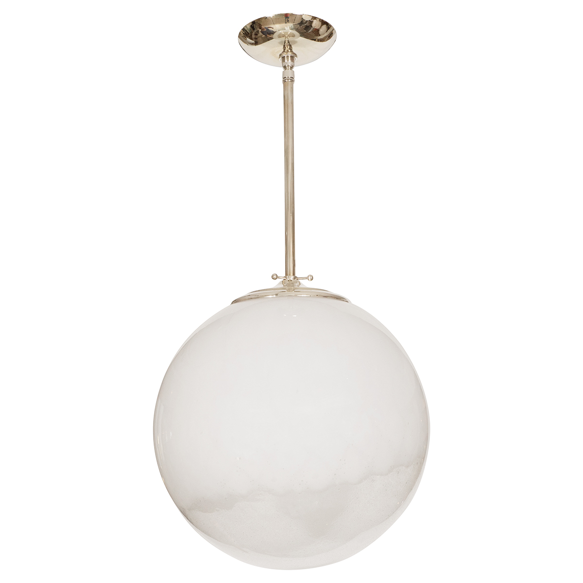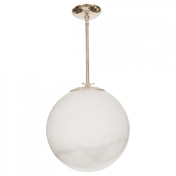 Nickel pendant fixture with frosted glass shade
