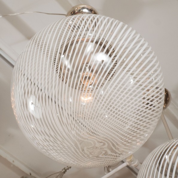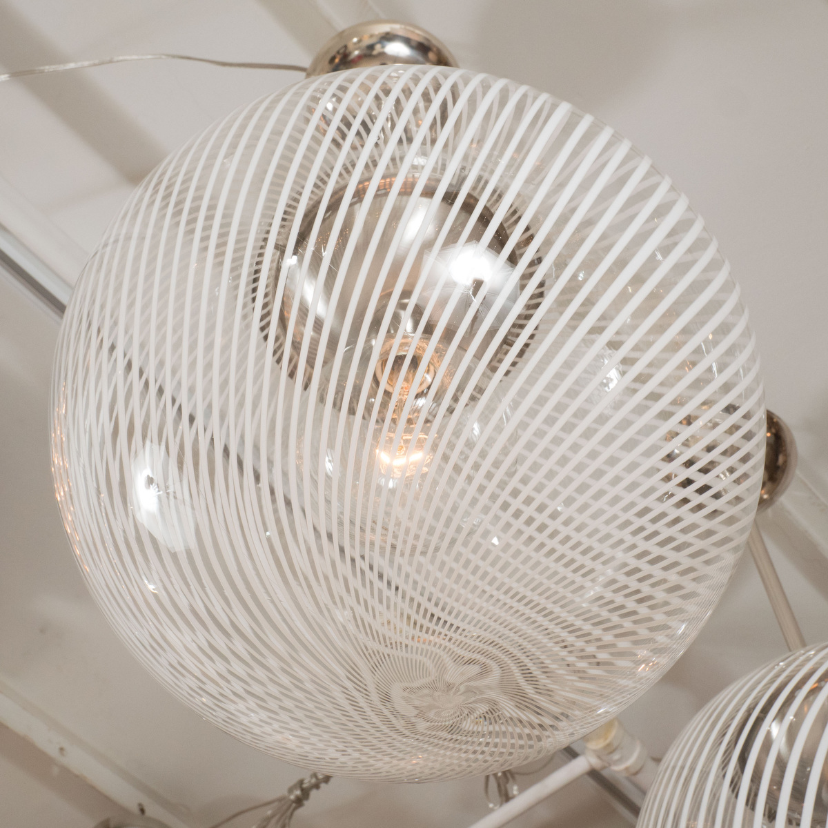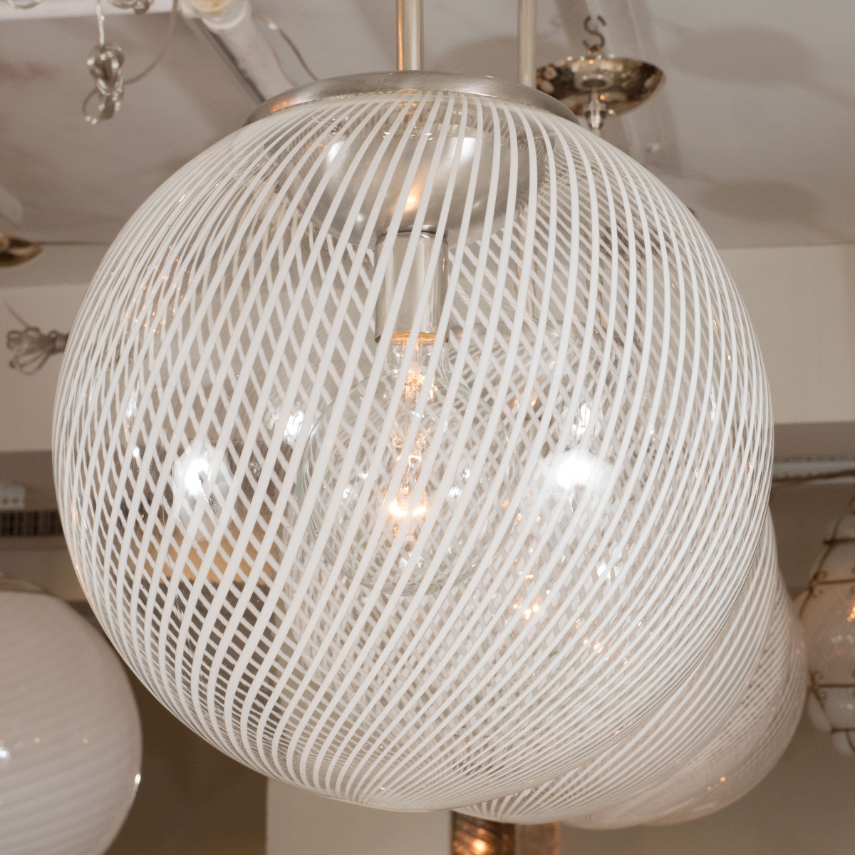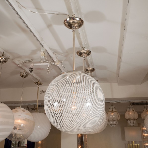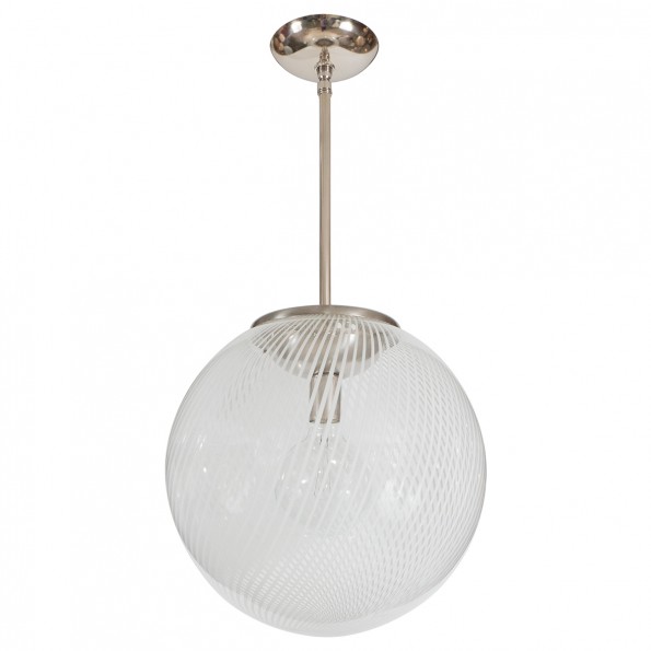 Nickel pendant fixture with spherical lattimo shade