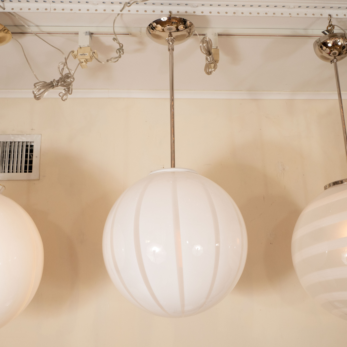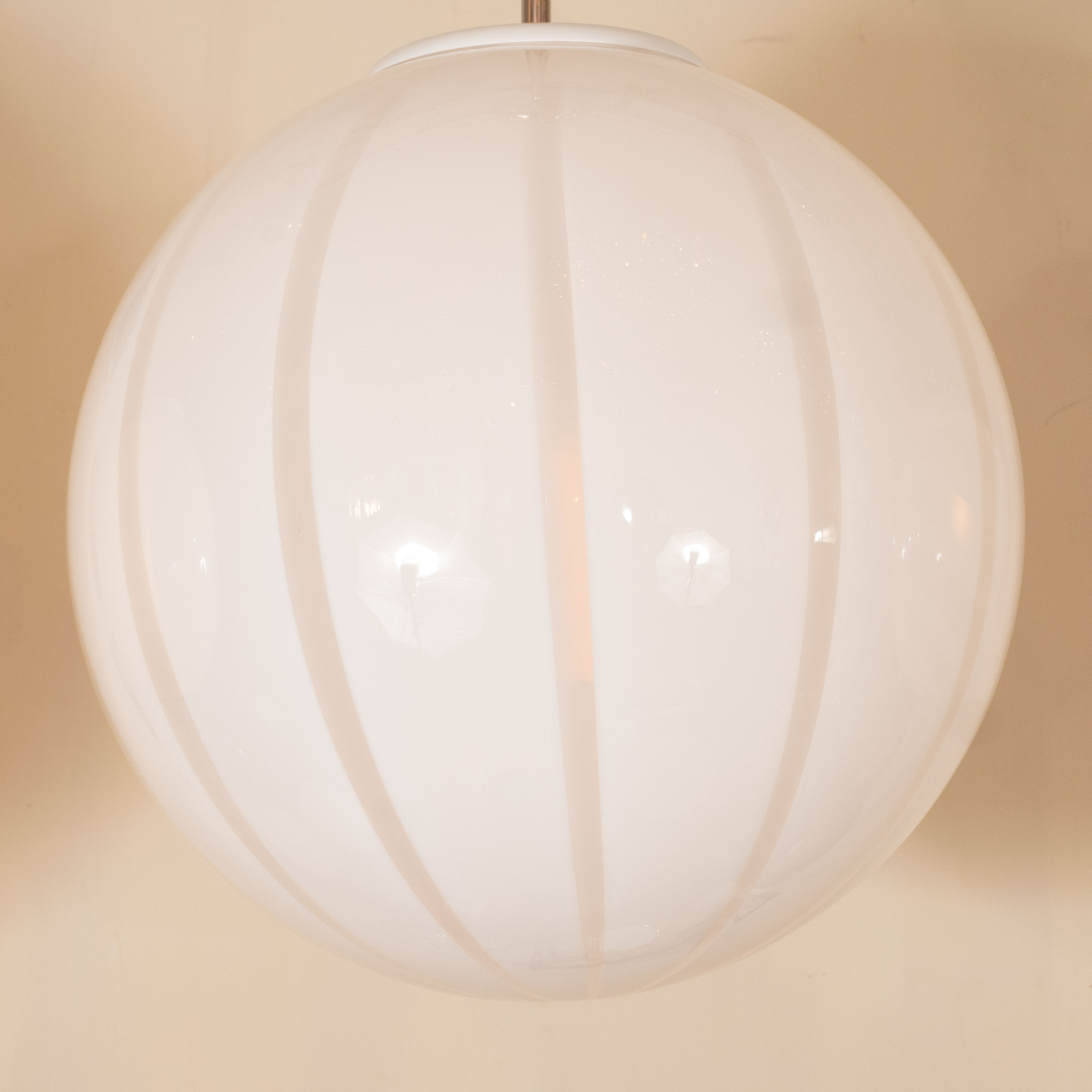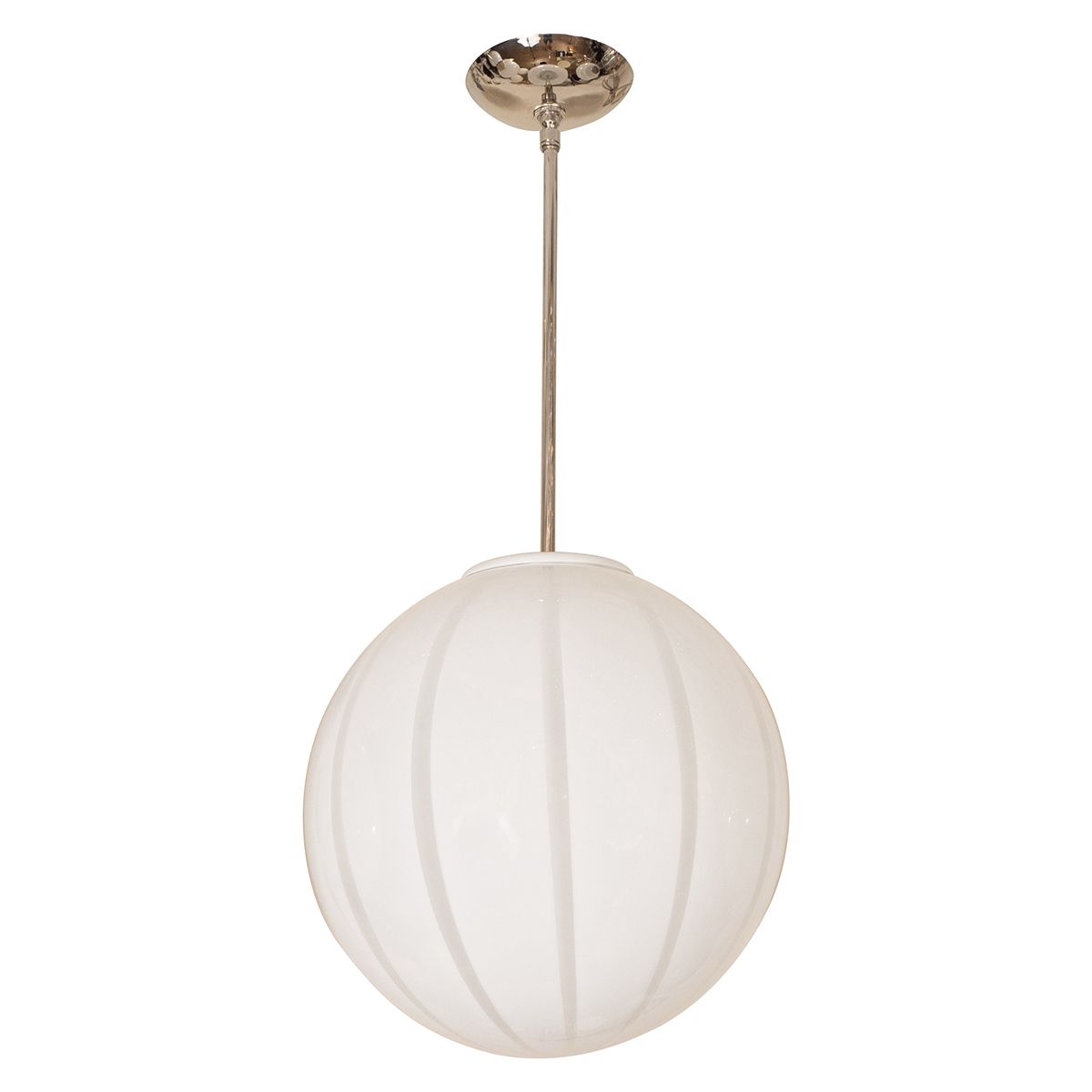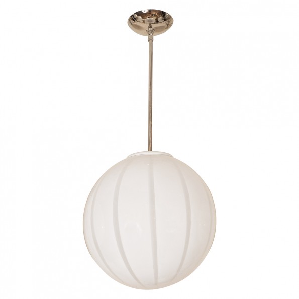 Nickel pendant fixture with spherical lattimo shade