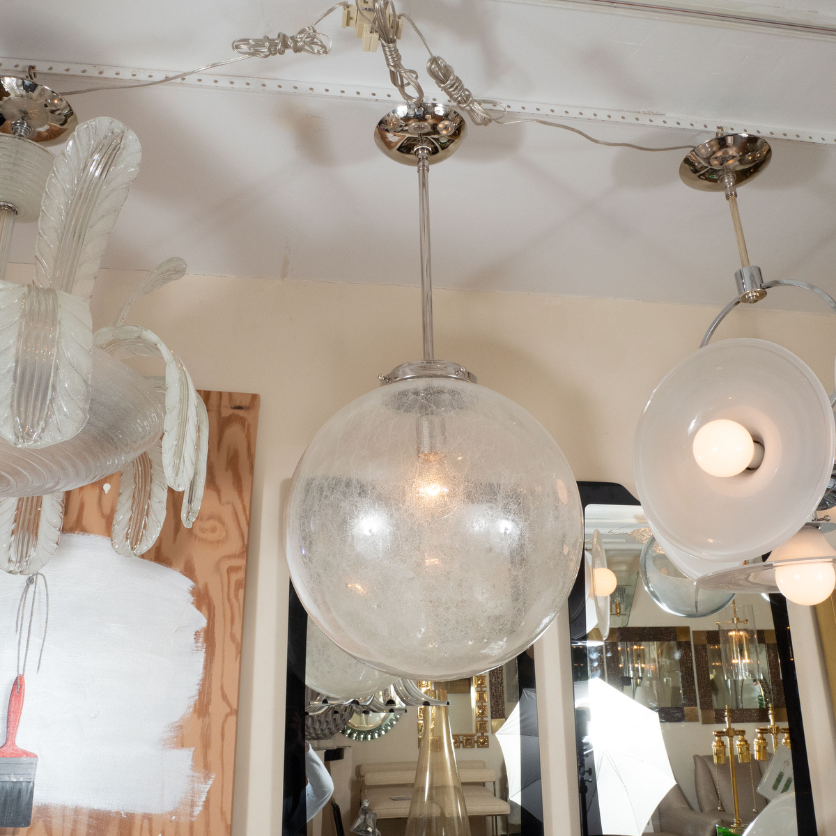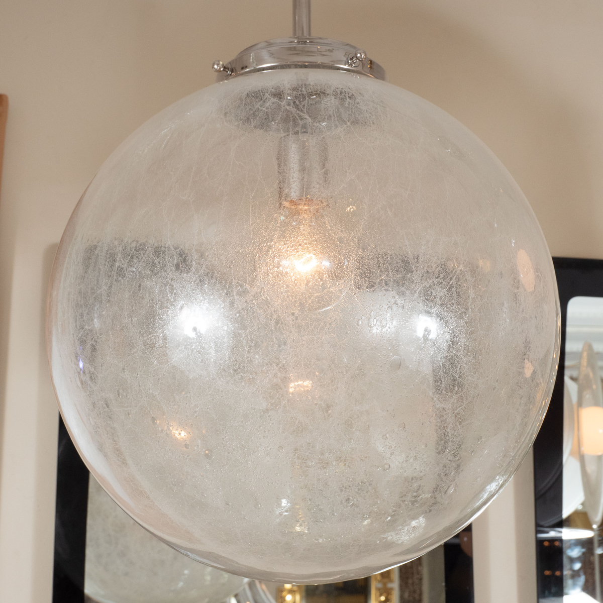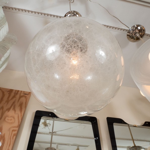 Nickel pendant fixture with spherical shade