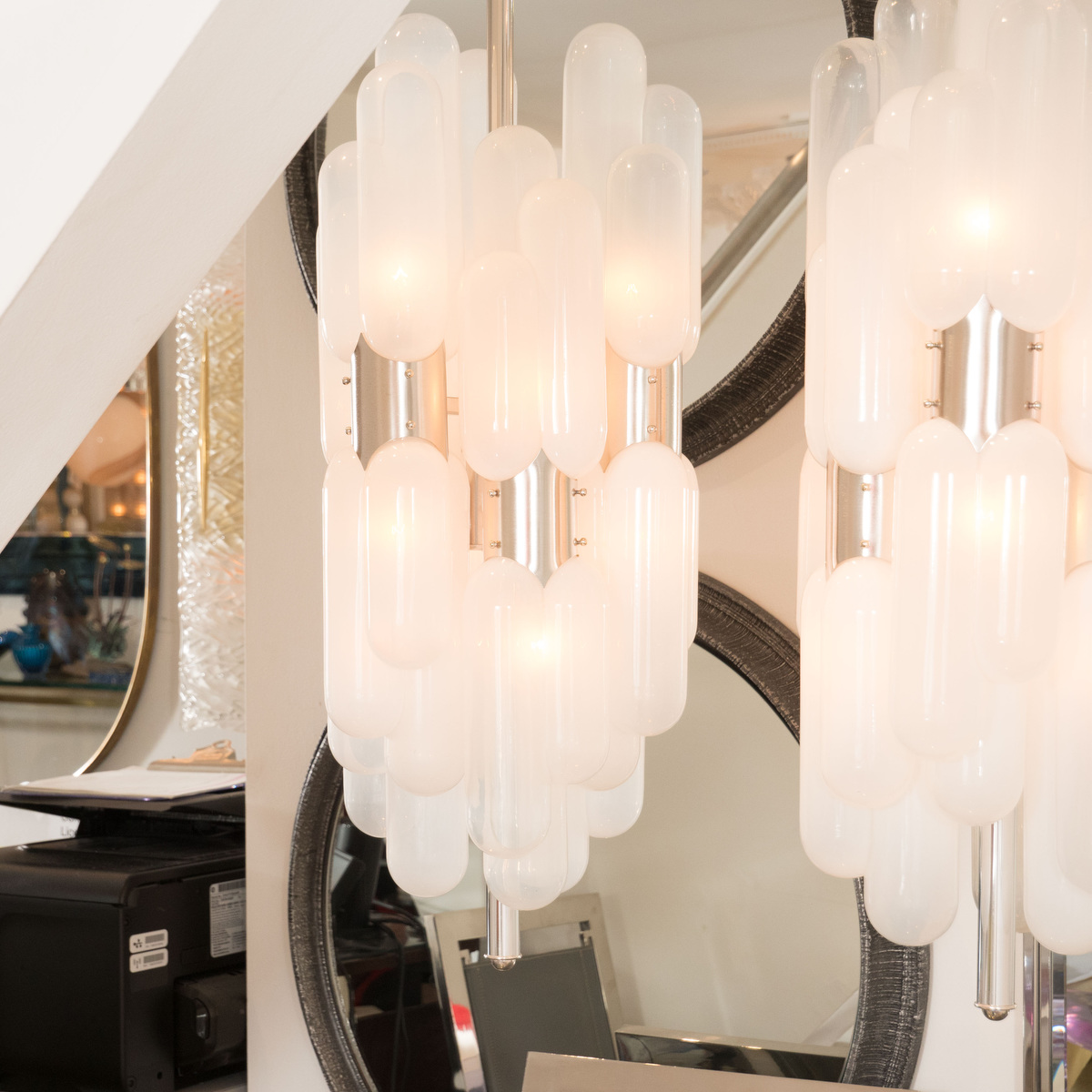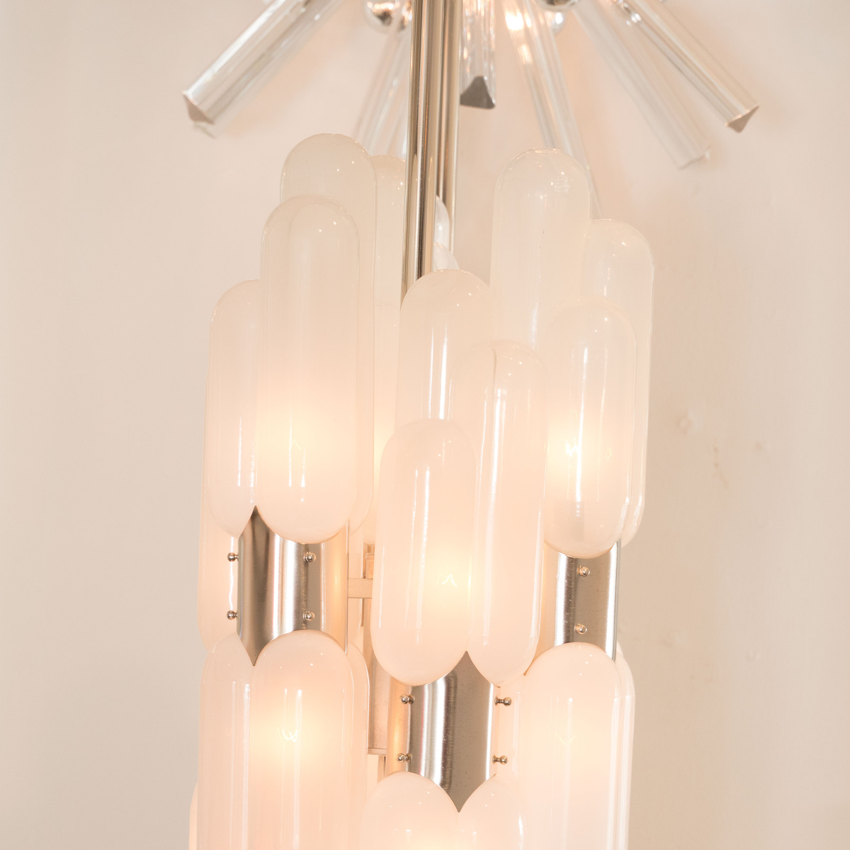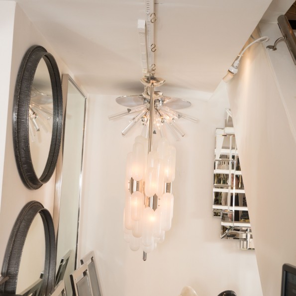 Pendant fixture with multiple frosted "torpedo" shades