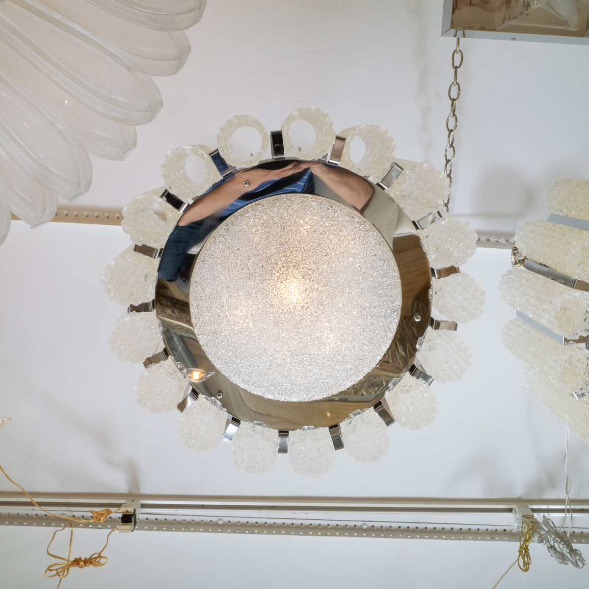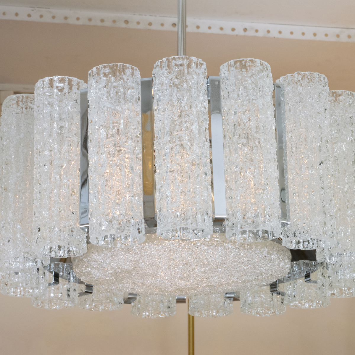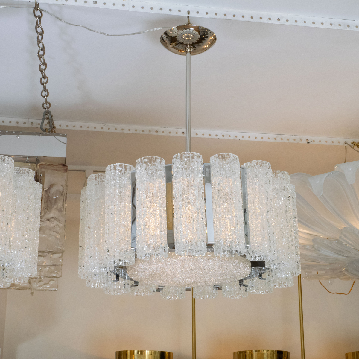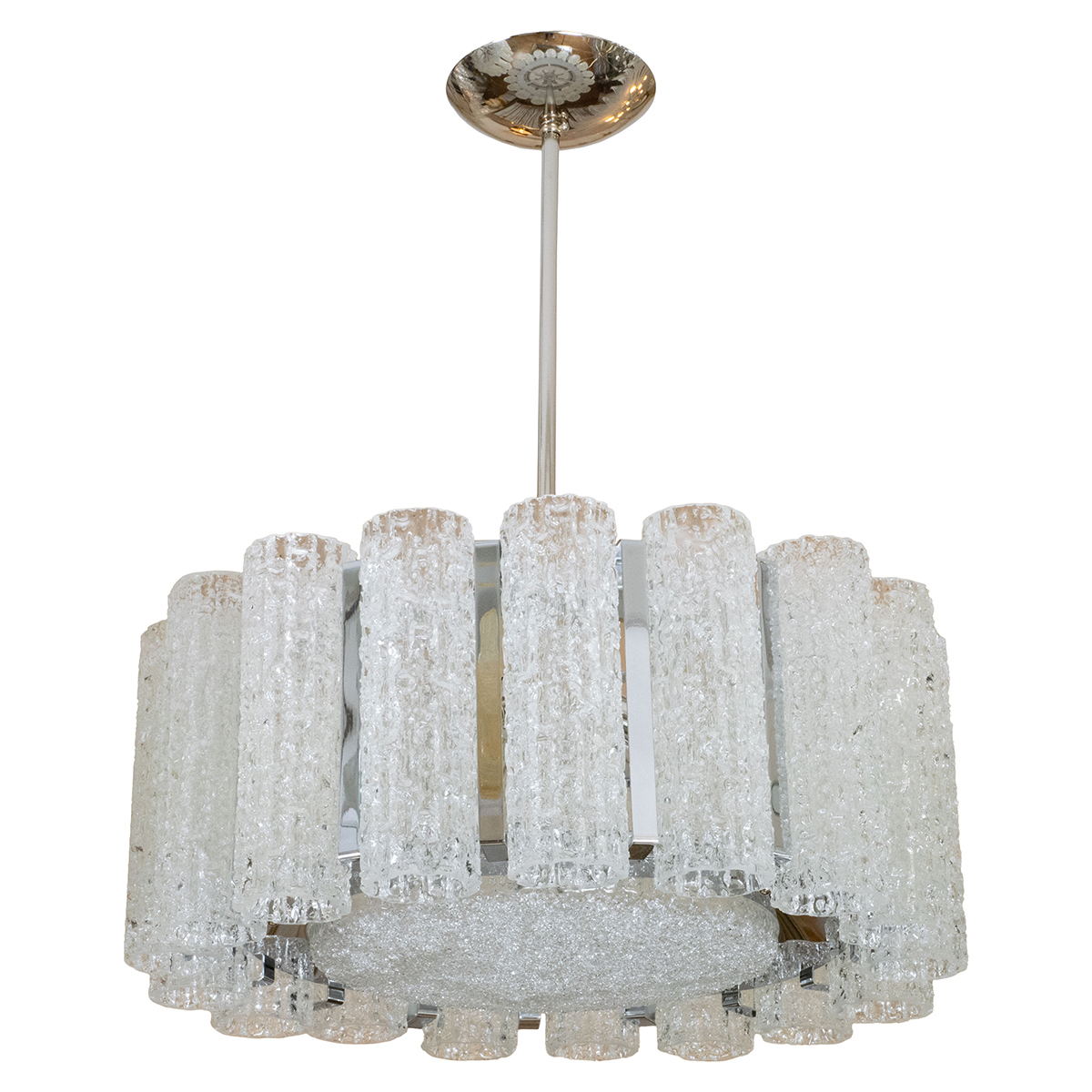 Polished nickel drum form pendant by Doria