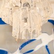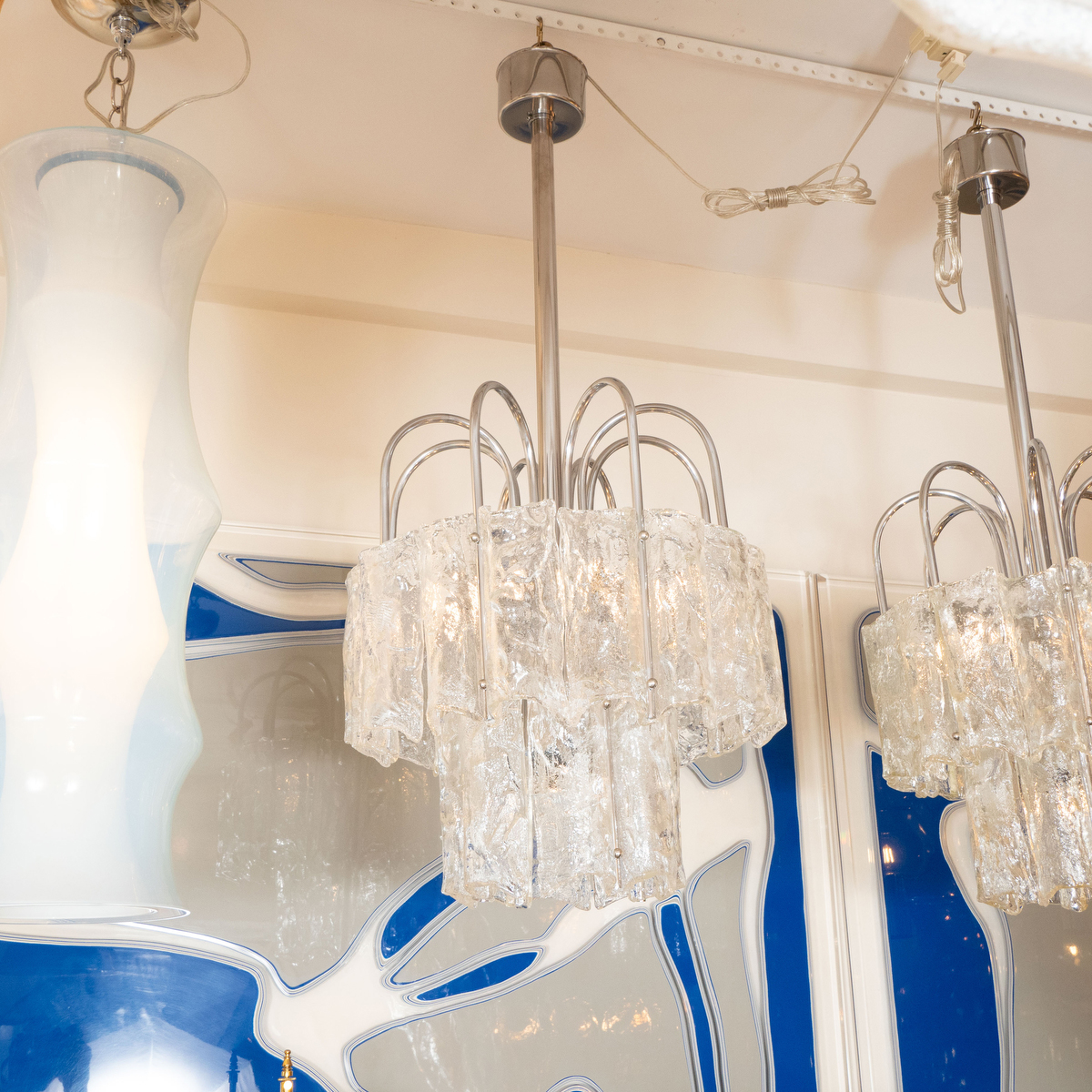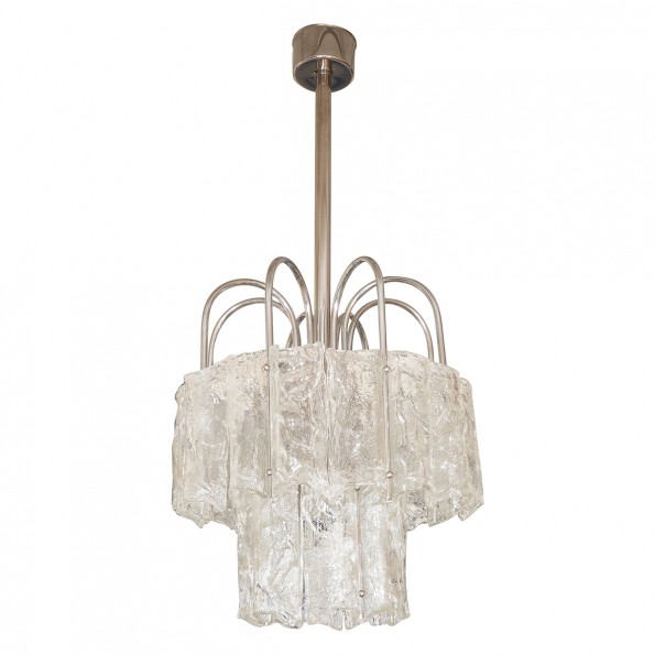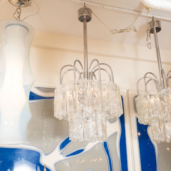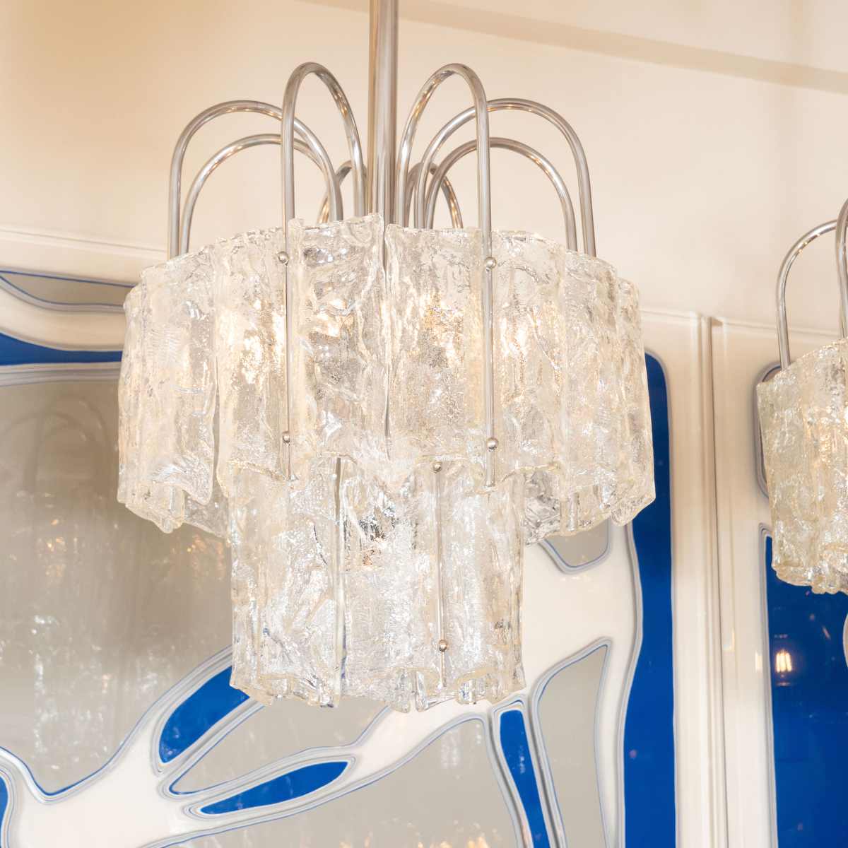 Polished nickel fixture featuring "tulip" form shades by Mazzega