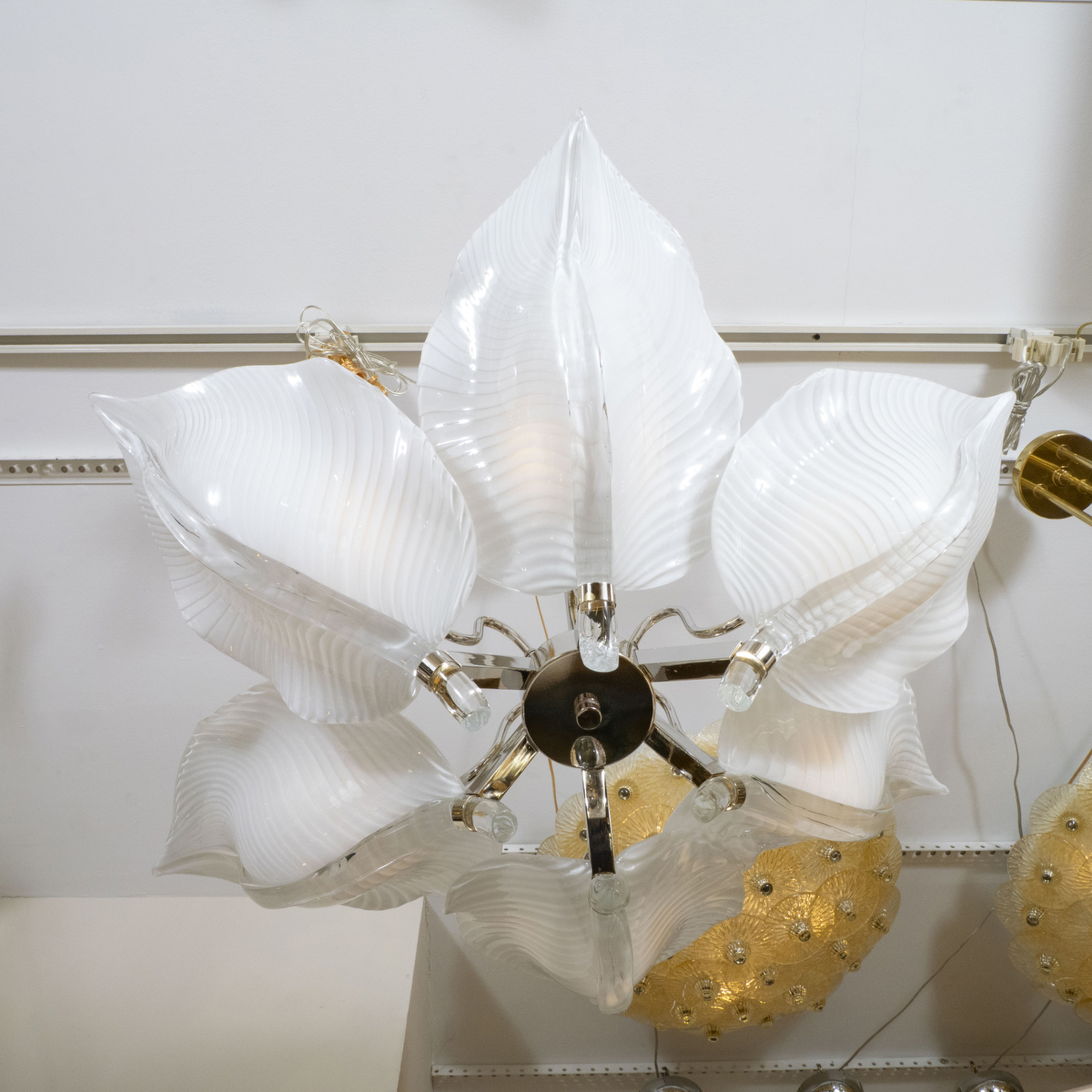 Polished nickel leaf form ceiling fixture