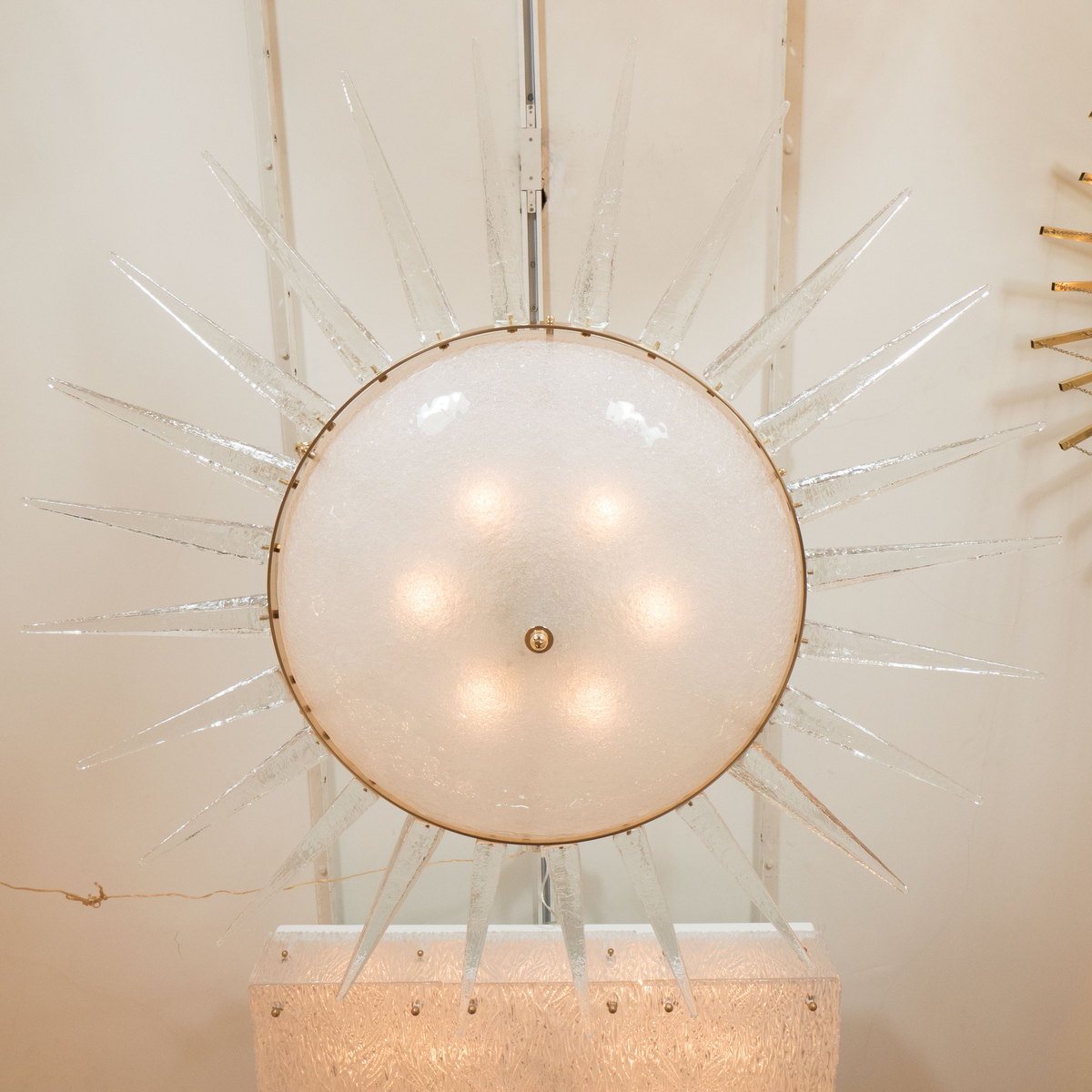 Saucer form frosted glass sunburst pendant ceiling fixture by John Salibello