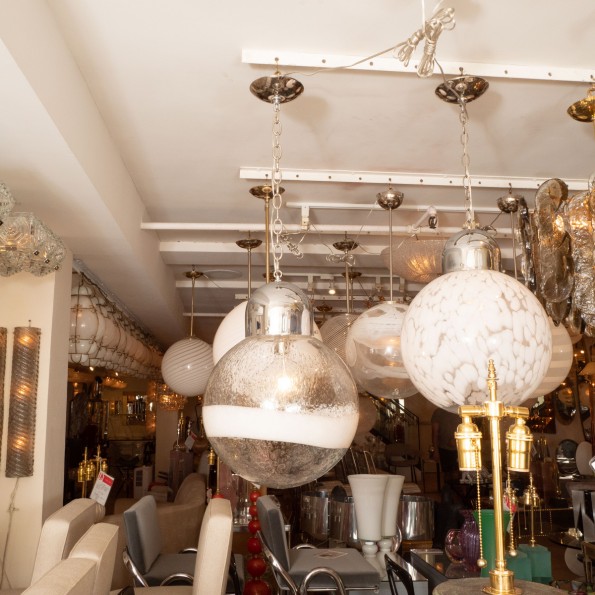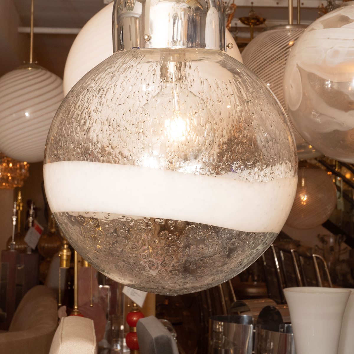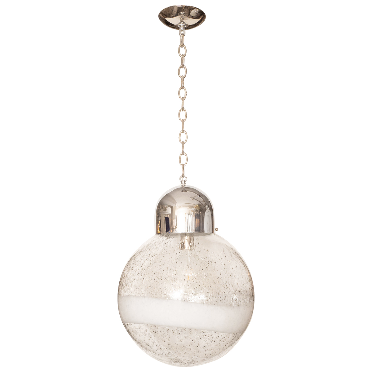 Spherical lattimo wide stripe glass pendant fixture