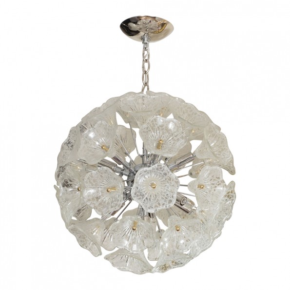 Spherical pendant composed of clear glass flowers