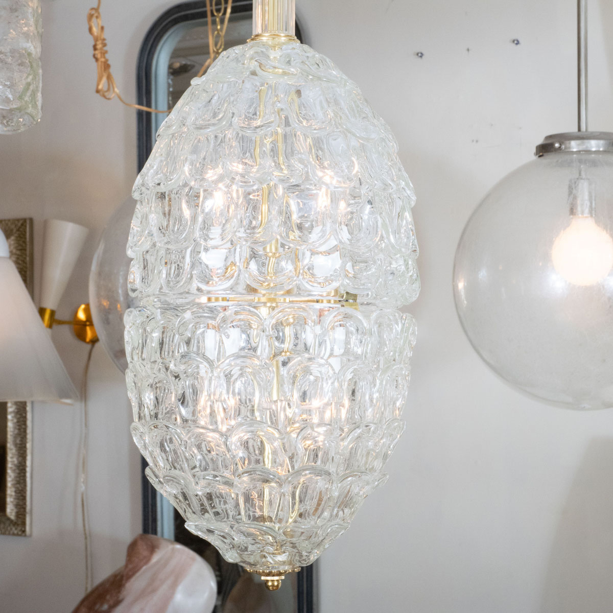 Textured Murano glass lantern style fixture by Seguso