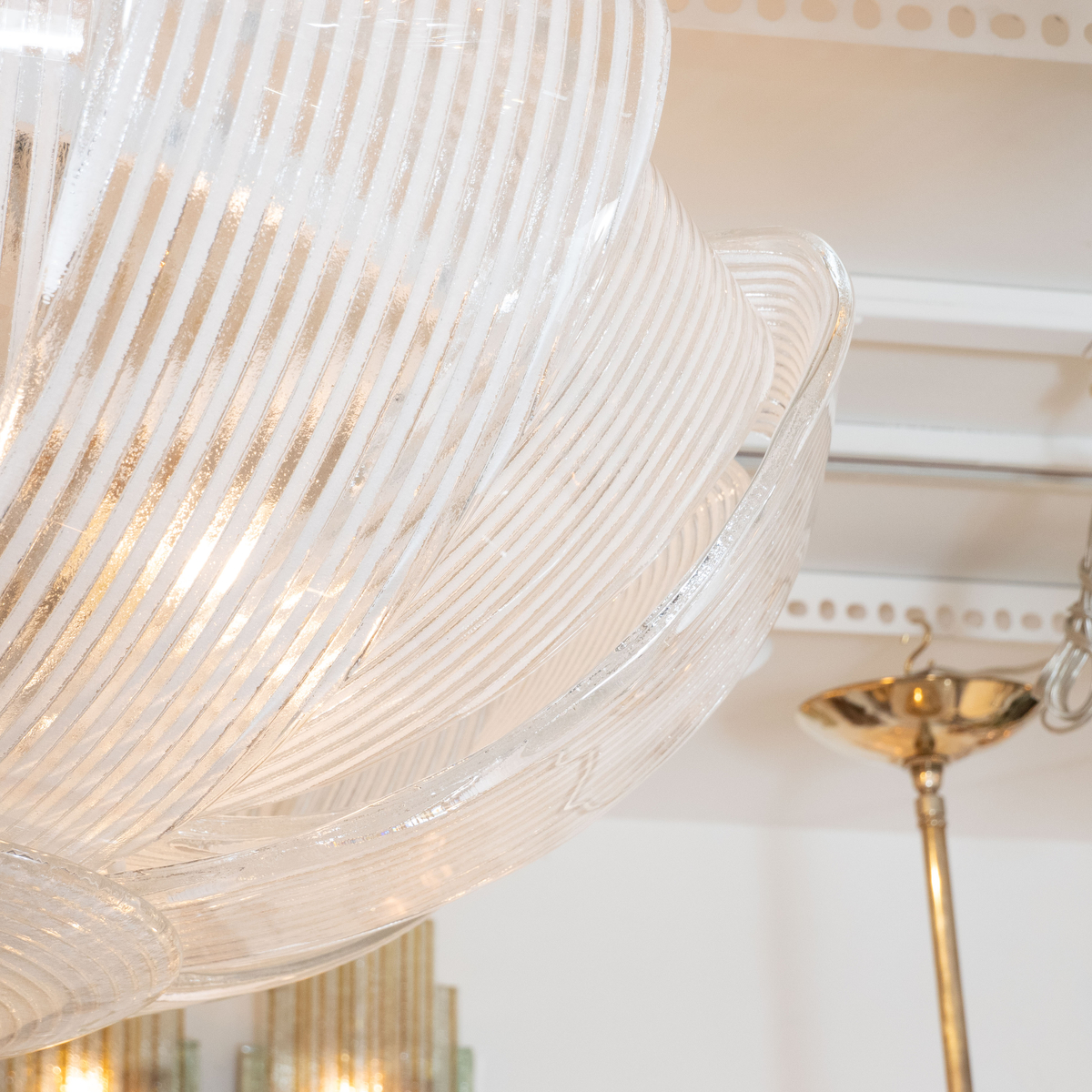 Curved and striped glass ceiling mount fixture