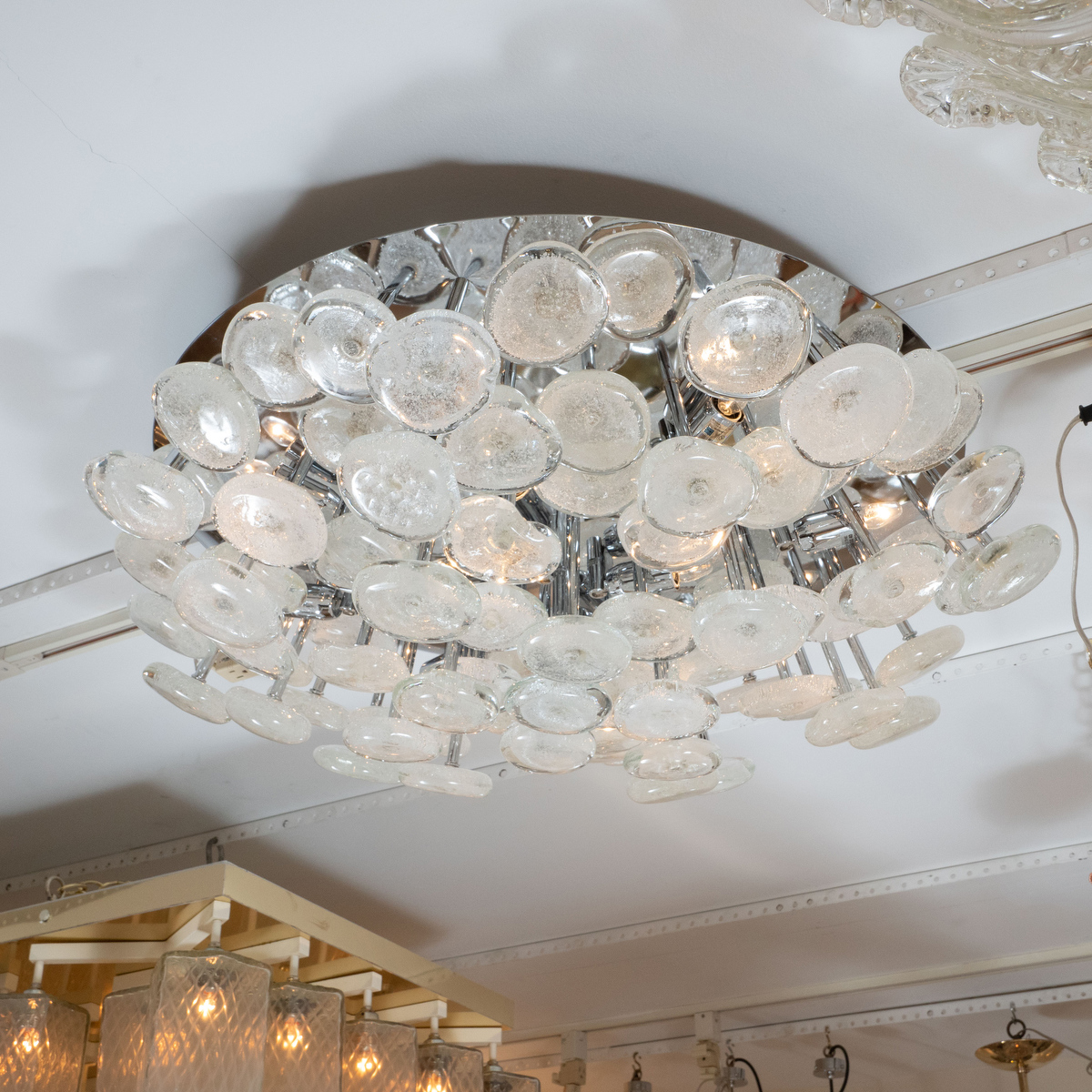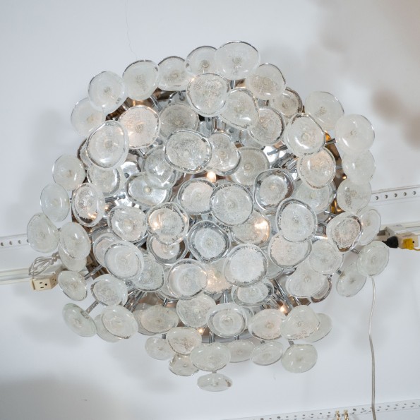 Nickel flush mount fixture with frosted white glass