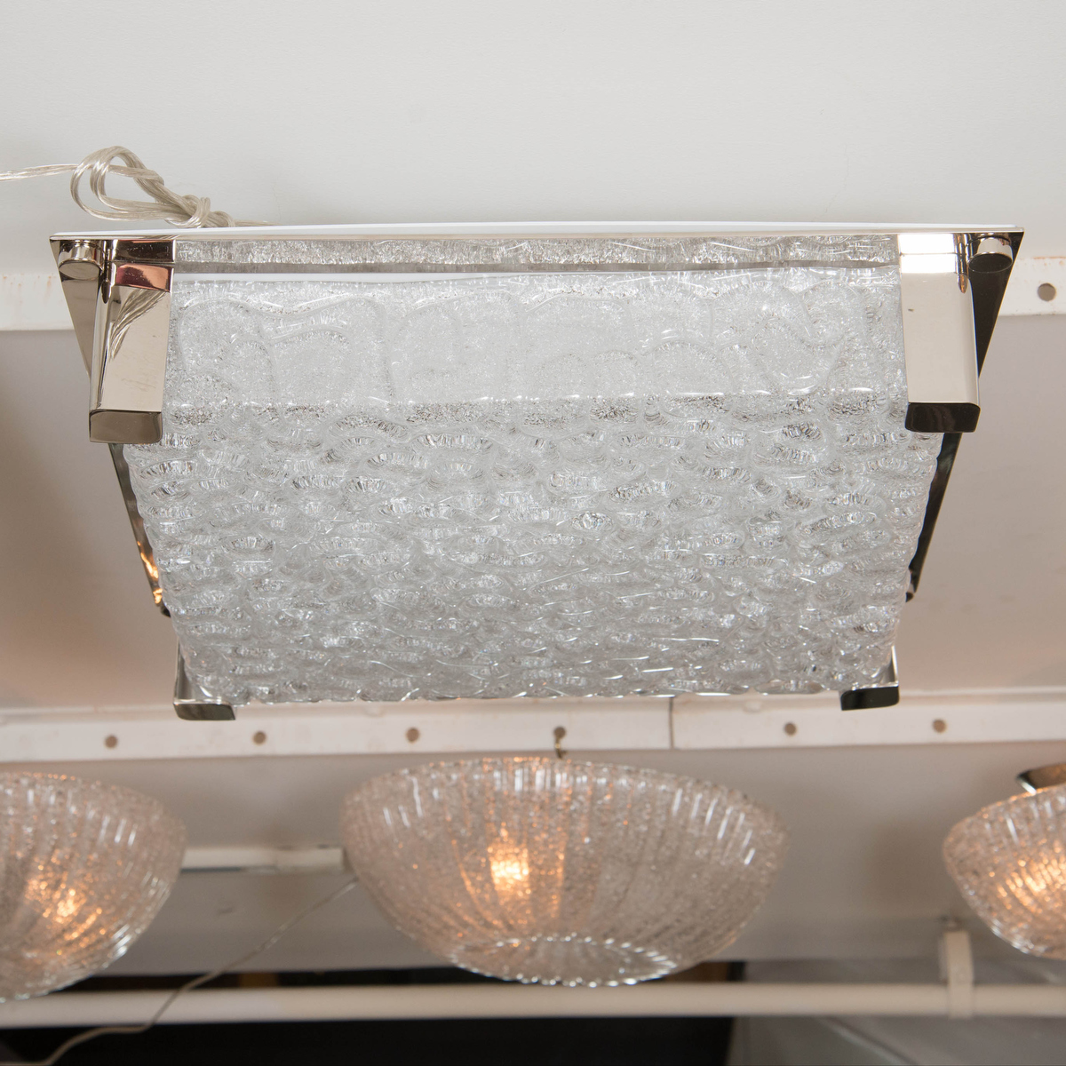 Square nickel flush mount ceiling fixture