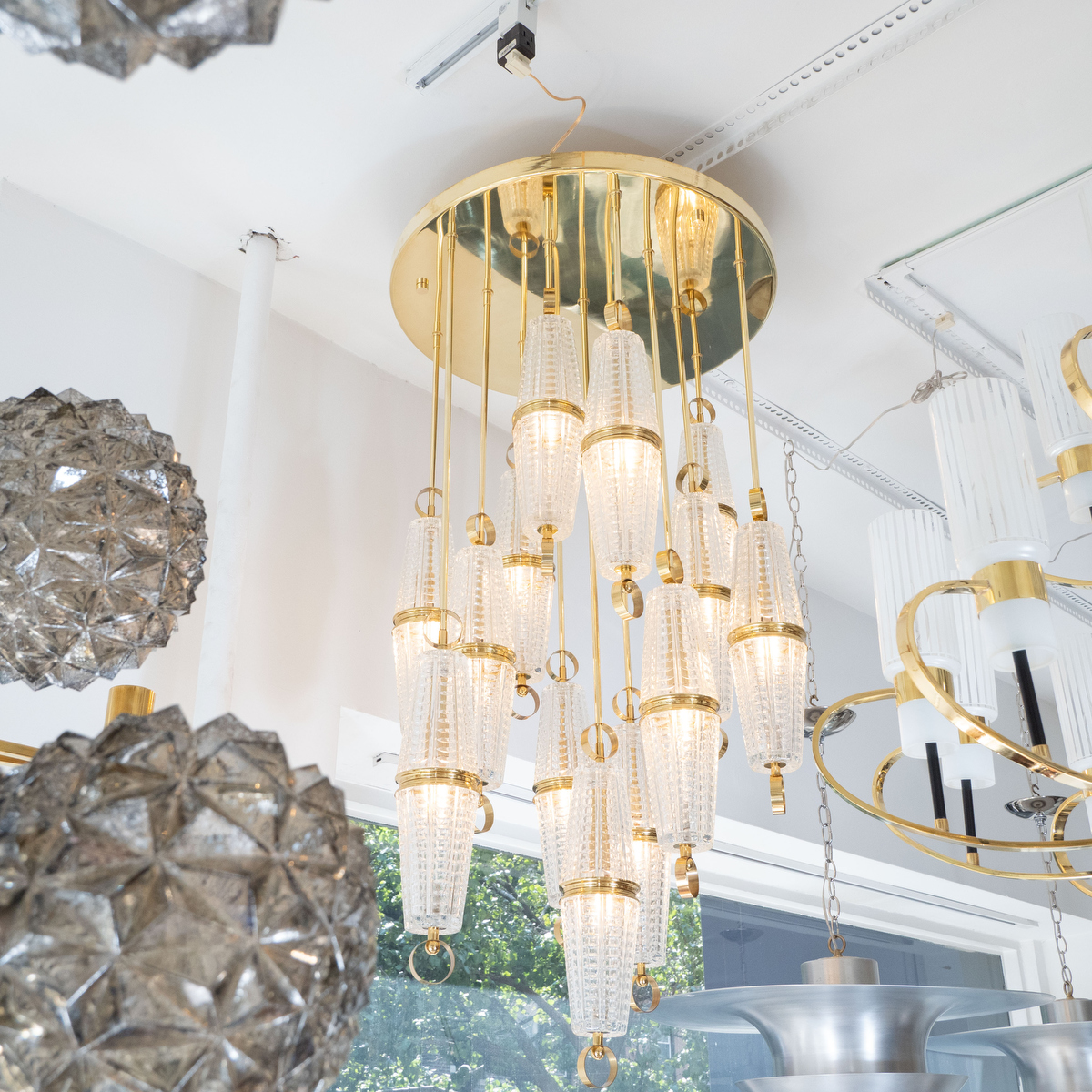 Suspended glass cluster flush mount by Kalmar