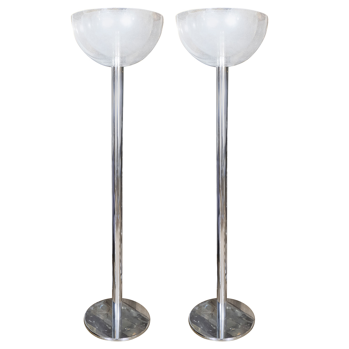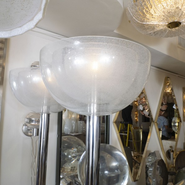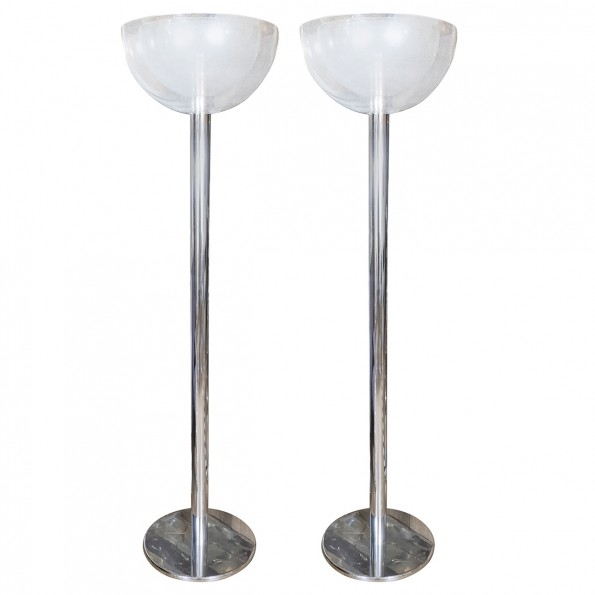 Pair of chrome and glass concentric floor lamps by Mazzega