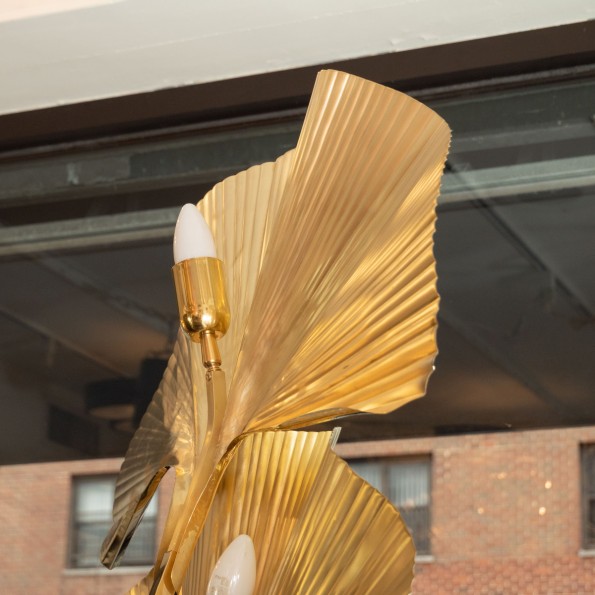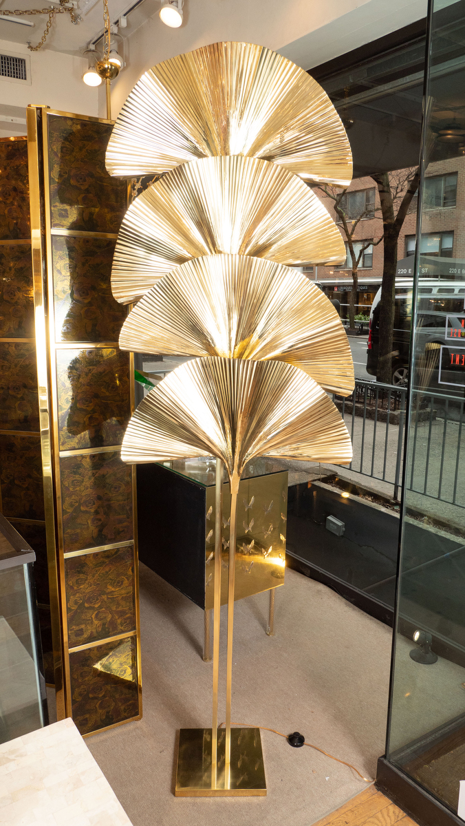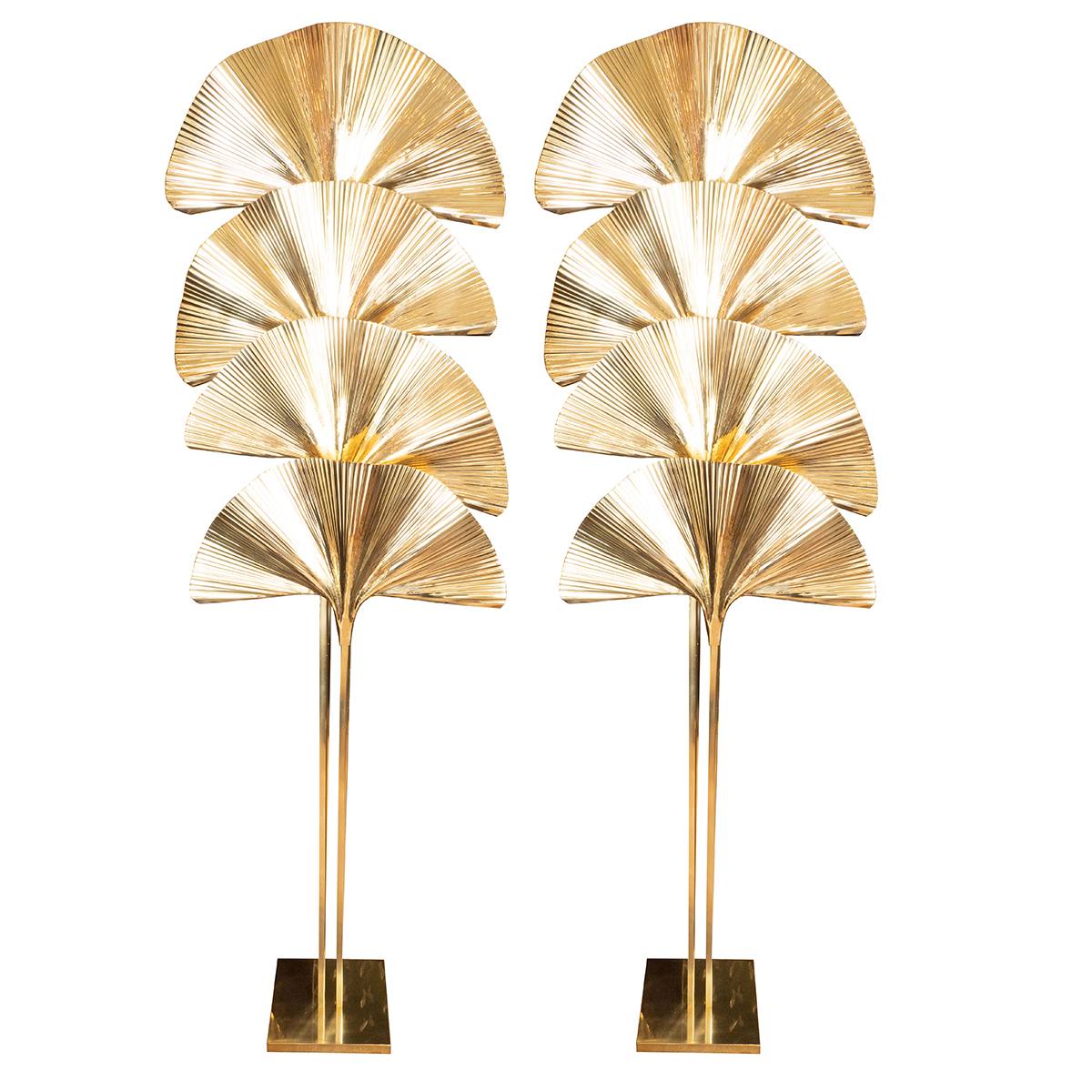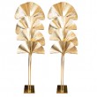 Pair of tall brass frond form floor lamps