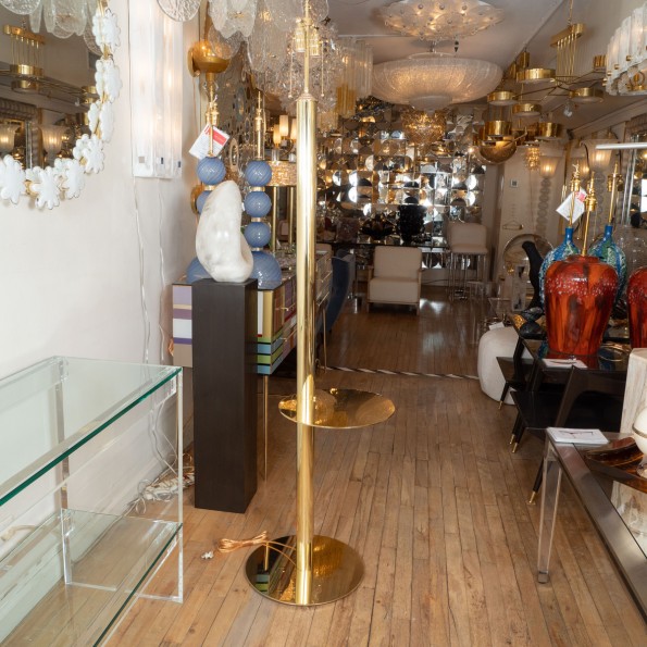Single standing brass floor lamp