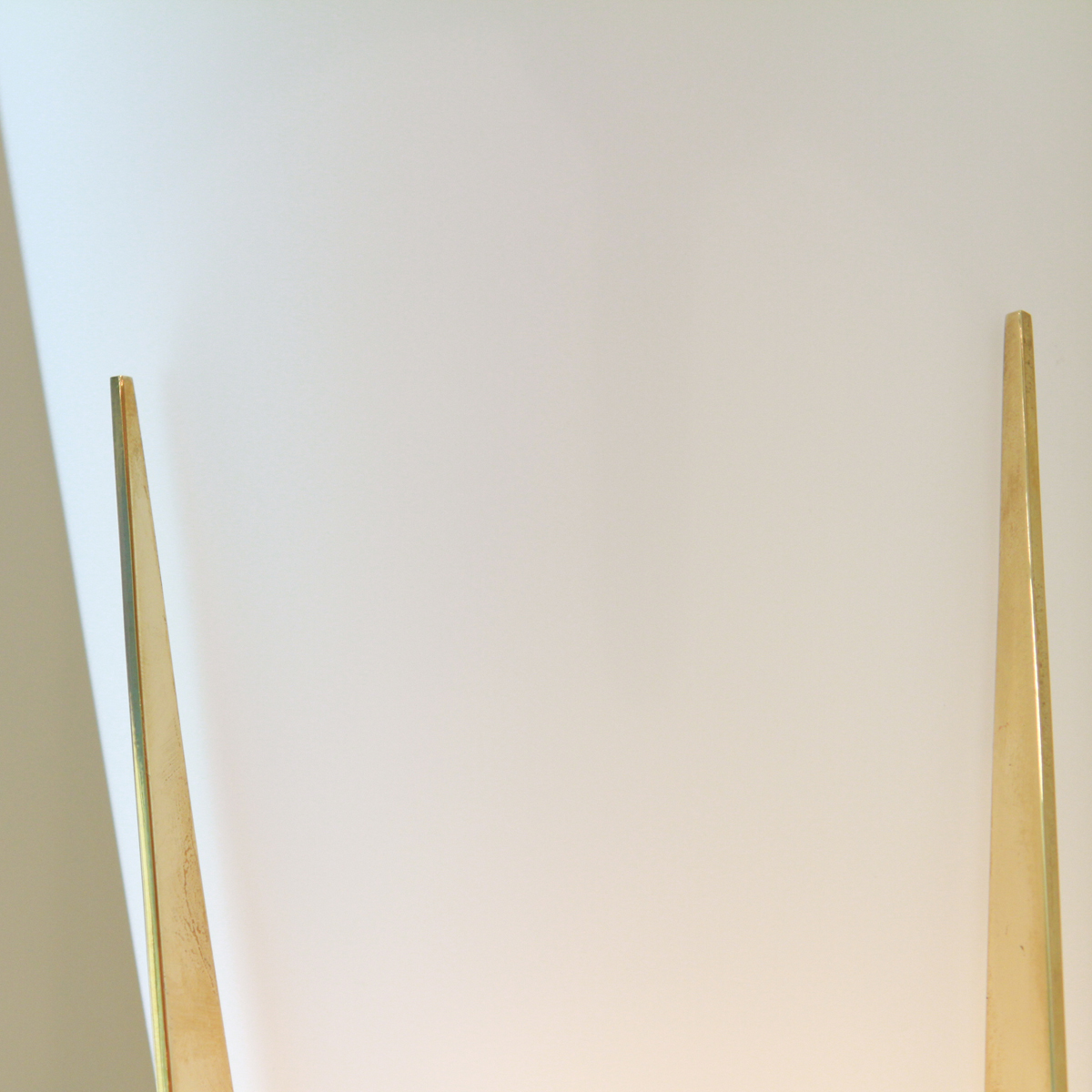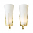 Pair of brass sconces with conical frosted glass shades by Stilnovo